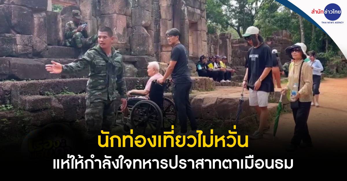 นักท่องเที่ยวไม่หวั่น แห่ให้กำลังใจทหารปราสาทตาเมือนธม