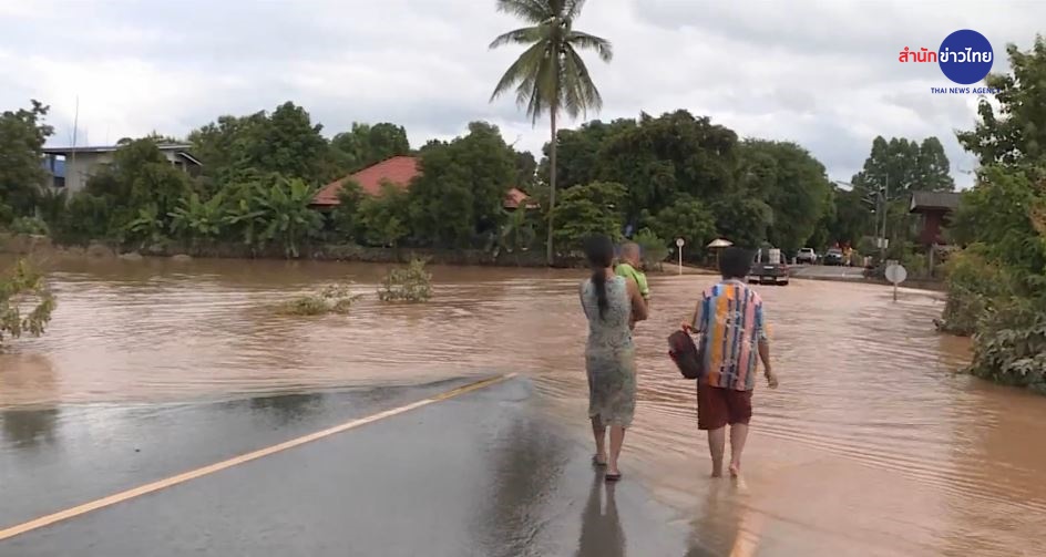 น้องออฟกับแม่พาน้องบอลเดินข้ามน้ำที่ยังท่วมขังถนนอยู่ กลับไปบ้านที่แทบไม่มีอะไรเหลือ และไม่รู้ว่าจะใช้เวลาเท่าไหร่กว่าจะใช้ชีวิตกันได้เหมือนเดิม น้ำท่วมครั้งนี้จึงเหมือนซ้ำเติมชีวิตผู้คนมากมายที่ต้องเผชิญชะตากรรมหลังน้ำลดกันต่อไป. – สำนักข่าวไทย