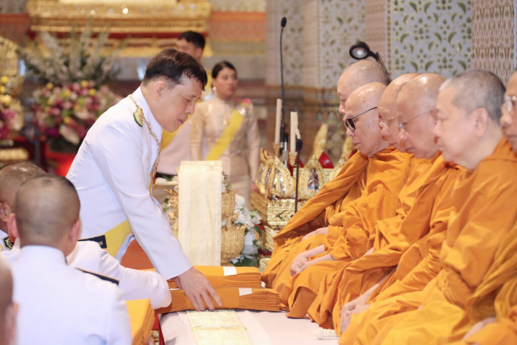 เสร็จแล้ว พระสงฆ์ 30 รูป เจริญพระพุทธมนต์ พระบาทสมเด็จพระเจ้าอยู่หัว ทรงจุดเทียนดูหนังสือเทศน์พระราชทานแก่เจ้าพนักงานพระราชพิธี เชิญไปปักที่จงกลธรรมาสน์ ทรงจุดธูปเทียนเครื่องทรงธรรม แล้วทรงจุดธูปเทียนเครื่องทองน้อยที่หน้าพระแท่นพระนพปฎลมหาเศวตฉัตร สำหรับพระบรมอัฐิและพระอัฐิทรงธรรม พระธรรมโพธิวงศ์ (วีรยุทธ์ วีรยุทฺโธ) เจ้าอาวาสวัดไทยพุทธคยา สาธารณรัฐอินเดีย ถวายศีล และถวายพระธรรมเทศนา เรื่อง “สัทธากถา” (อ่านว่า สัท-ทา-กะ-ถา หมายถึง ว่าด้วยเรื่องของศรัทธา) พระบาทสมเด็จพระเจ้าอยู่หัว ทรงประเคนจตุปัจจัยไทยธรรมบูชากัณฑ์เทศน์ ทรงทอดผ้าไตร เที่ยวแรก 15 ไตร และทรงทอดผ้าไตร เที่ยวที่สอง 16 ไตร พระสงฆ์สดับปกรณ์ ทรงหลั่งทักษิโณทก พระสงฆ์ถวายอนุโมทนา ถวายอดิเรก ถวายพระพรลา