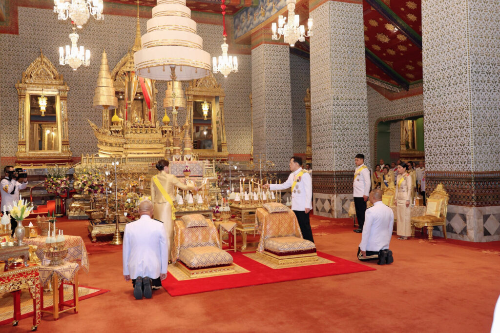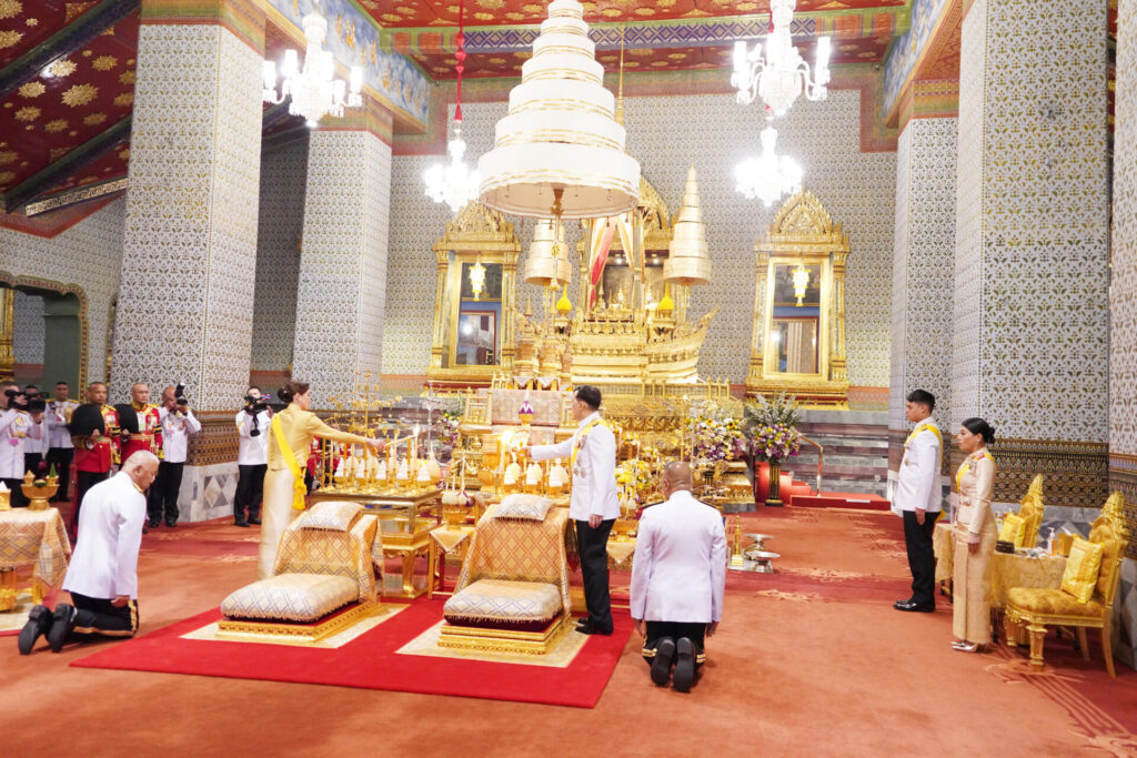 เสร็จแล้ว เสด็จพระราชดำเนินไปทรงกราบพระพุทธปฏิมาชัยวัฒน์ รัชกาลที่ 9 พระพุทธมหาราช ฉ ปริวัตน์ และพระพุทธรูปประจำพระชนมวารที่หน้าพระที่นั่งบุษบกมาลา และทรงกราบถวายบังคมพระบรมอัฐิ และพระอัฐิ ที่หน้าพระแท่นพระนพปฎลมหาเศวตฉัตร ทรงรับการถวายความเคารพของผู้มาเฝ้าทูลละอองธุลีพระบาท แล้วเสด็จออกจากพระที่นั่งอมรินทรวินิจฉัย เสด็จพระราชดำเนินไปประทับรถยนต์พระที่นั่ง เสด็จพระราชดำเนินกลับ.-211-สำนักข่าวไทย