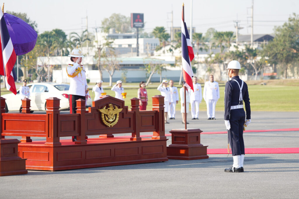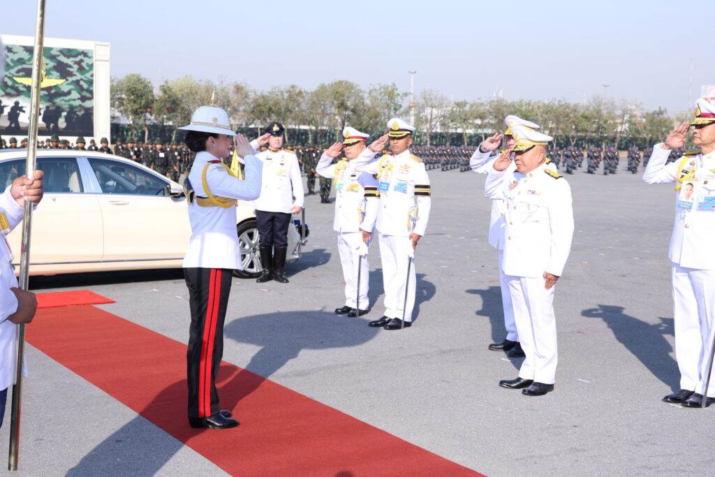 เมื่อเสด็จพระราชดำเนินถึง พลเอก ทรงวิทย์ หนุนภักดี ผู้บัญชาการทหารสูงสุด กราบบังคมทูลเชิญเสด็จขึ้นแท่นรับการถวายความเคารพ จากกองทหารเกียรติยศ โดยกองบิน 4 ซึ่งเป็นหน่วยที่ชนะเลิศการแข่งขันกองทหารเกียรติยศ ประจำปี 2567