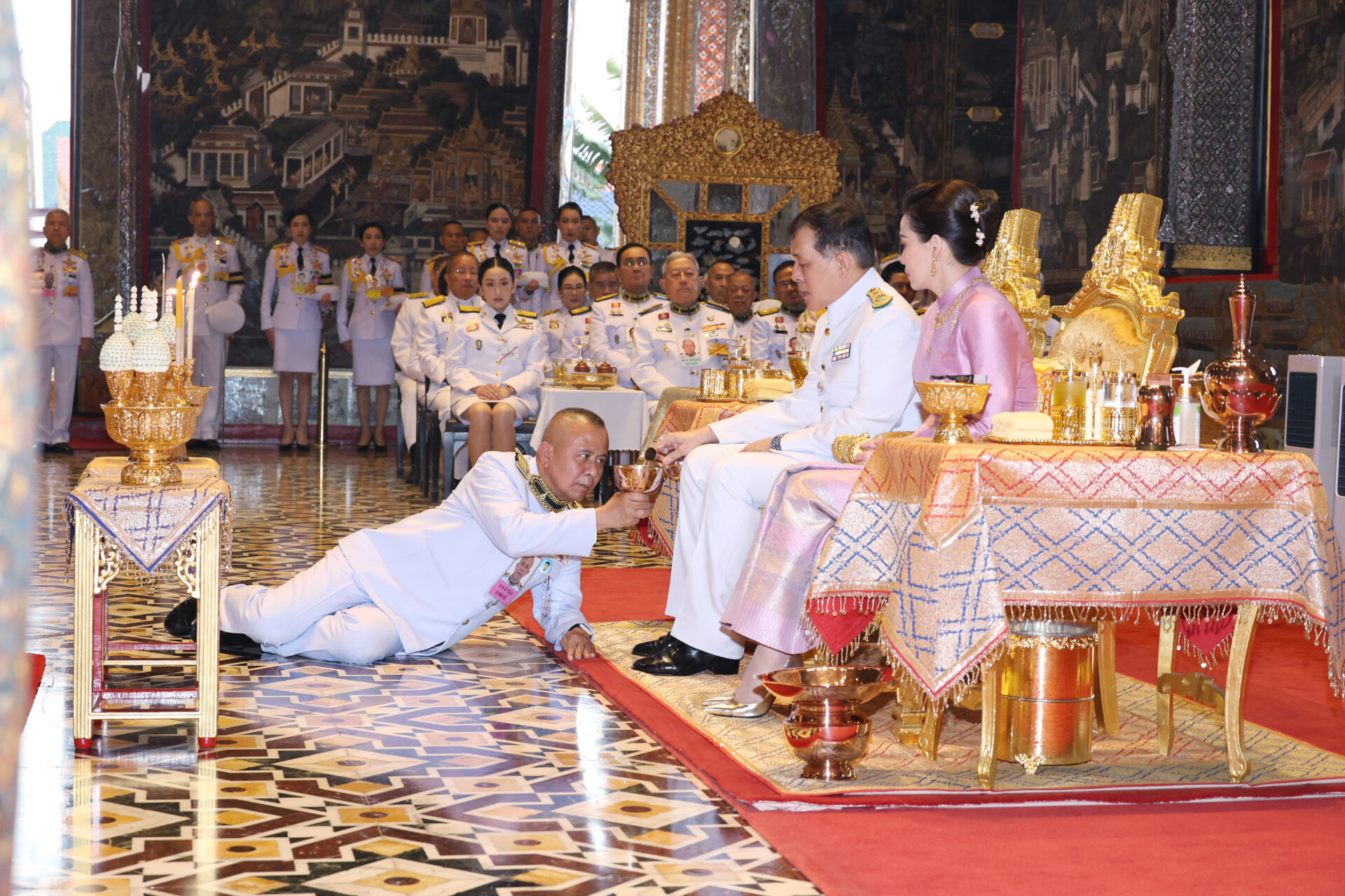 จบแล้ว พระบาทสมเด็จพระเจ้าอยู่หัว และสมเด็จพระนางเจ้า ฯ พระบรมราชินี ทรงกราบที่หน้าเครื่องนมัสการ ทรงรับการถวายความเคารพของผู้มาเฝ้าทูลละอองธุลีพระบาท แล้วเสด็จออกจากพระอุโบสถ ไปประทับรถยนต์พระที่นั่ง เสด็จพระราชดำเนินกลับพระที่นั่งอัมพรสถาน พระราชวังดุสิต.-211-สำนักข่าวไทย