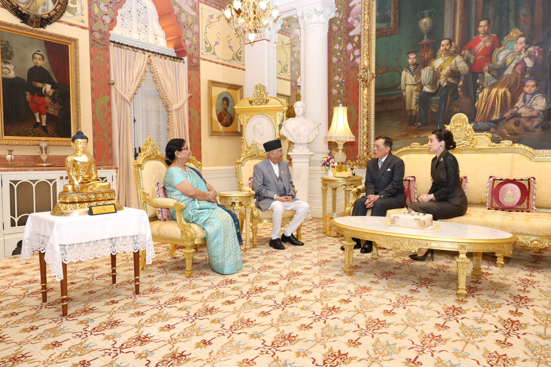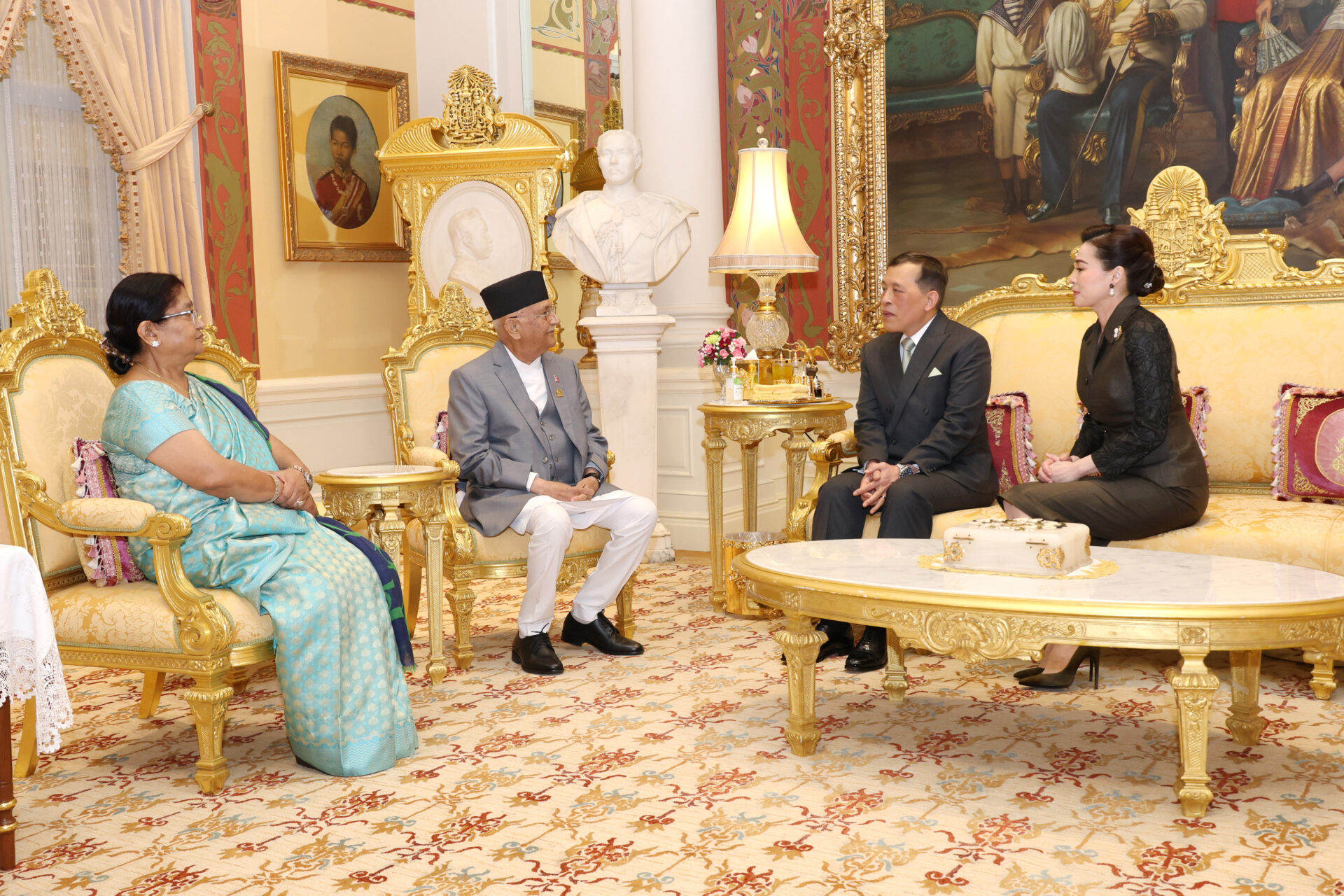 วันนี้ (2 เมษายน 2568) เวลา 18.12 น. พระบาทสมเด็จพระเจ้าอยู่หัว และสมเด็จพระนางเจ้า ฯ พระบรมราชินี เสด็จออก ณ พระที่นั่งอัมพรสถาน พระราชวังดุสิต พระราชทานพระบรมราชวโรกาสให้ นายเค พี ศรรมะ โอลี (Mr. K P Sharma Oli) นายกรัฐมนตรีเนปาล และนางราธิกา ศากยะ (Mrs. Radhika Shakya) ภริยา เฝ้าทูลละอองธุลีพระบาท ในโอกาสเดินทางมาเยือนประเทศไทยอย่างเป็นทางการในฐานะแขกของรัฐบาล