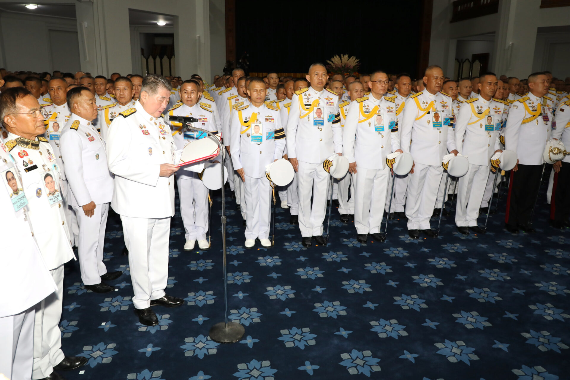 ข้าพเจ้ามีความยินดี ที่ได้มาพบกับนายทหารและนายตำรวจชั้นนายพล ในโอกาสที่มาถวายสัตย์ปฏิญาณตน ในวันนี้ การที่ได้เลื่อนยศเป็นนายพลนั้น แสดงให้เห็นว่า ท่านมีศักยภาพที่จะปฏิบัติงานในตำแหน่งที่มีความรับผิดชอบสูง และมีความสามารถในการบังคับบัญชา หมายความว่า ท่านจะต้องบังคับบัญชาด้วยความเฉลียวฉลาด และสุจริตเที่ยงธรรม ให้ผู้ใต้บังคับบัญชาได้เห็นเป็นตัวอย่าง และประพฤติตามด้วยความเต็มใจยินดี ในขณะเดียวกัน เมื่ออยู่ในฐานะผู้ใต้บังคับบัญชา ท่านก็ต้องยึดถือปฏิบัติตามคำสั่งที่ถูกต้องเป็นธรรม เพื่อให้บังเกิดประโยชน์แก่งาน และประเทศชาติ จึงขอให้ทุกท่านตั้งใจประพฤติตนปฏิบัติงาน ให้สมกับที่มียศตำแหน่งอันสำคัญนี้