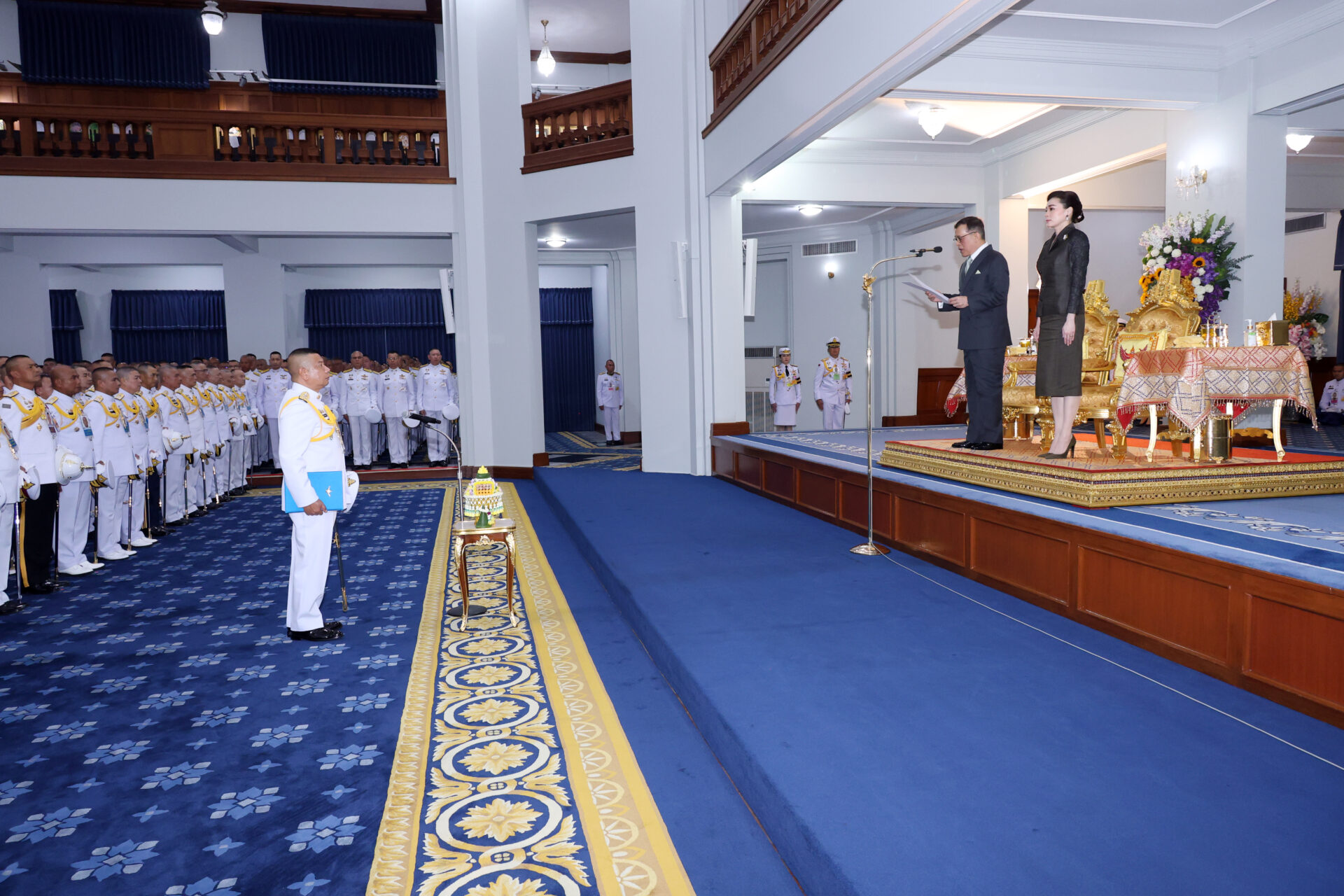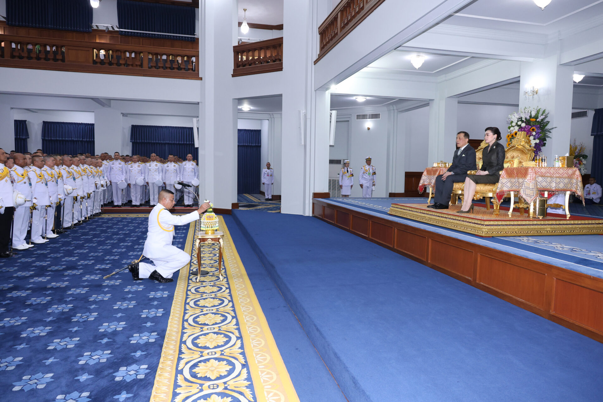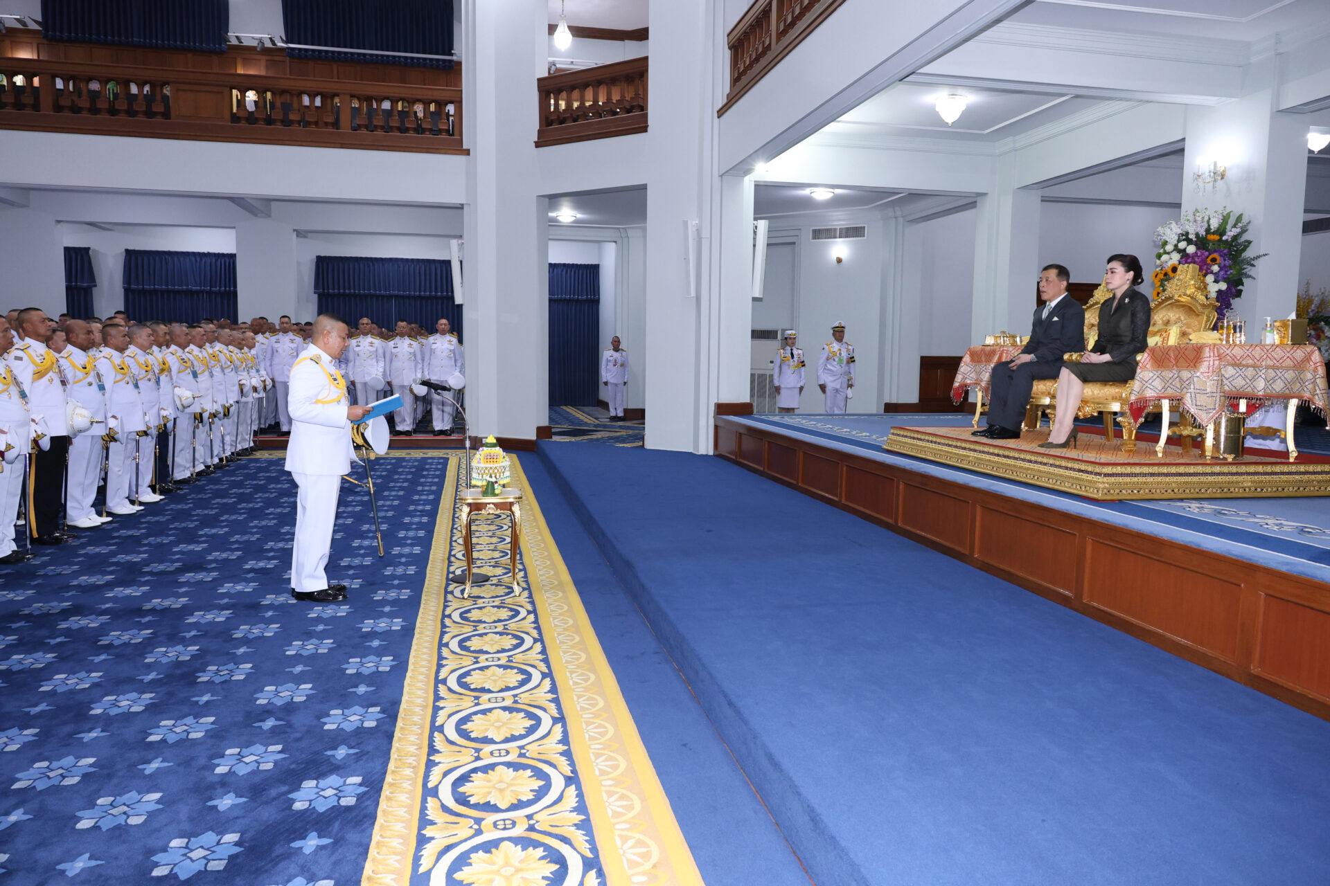 จากนั้น เวลา 19.04 น. พระบาทสมเด็จพระเจ้าอยู่หัว และสมเด็จพระนางเจ้า ฯ พระบรมราชินี เสด็จลง ณ ศาลาดุสิดาลัย สวนจิตรลดา พระราชวังดุสิต พระราชทานพระบรมราชวโรกาสให้ นายภูมิธรรม เวชยชัย รองนายกรัฐมนตรีและรัฐมนตรีว่าการกระทรวงกลาโหม นำนายทหารชั้นนายพล และนายตำรวจชั้นนายพล ที่ได้รับพระราชทานยศ ประจำปี 2567 รวม 1,125 นาย เฝ้าทูลละอองธุลีพระบาท ถวายสัตย์ปฏิญาณ โอกาสนี้ พลเอก ณัฐพล นาคพาณิชย์ รัฐมนตรีช่วยว่าการกระทรวงกลาโหม และคณะ ร่วมเฝ้าทูลละอองธุลีพระบาท ด้วย