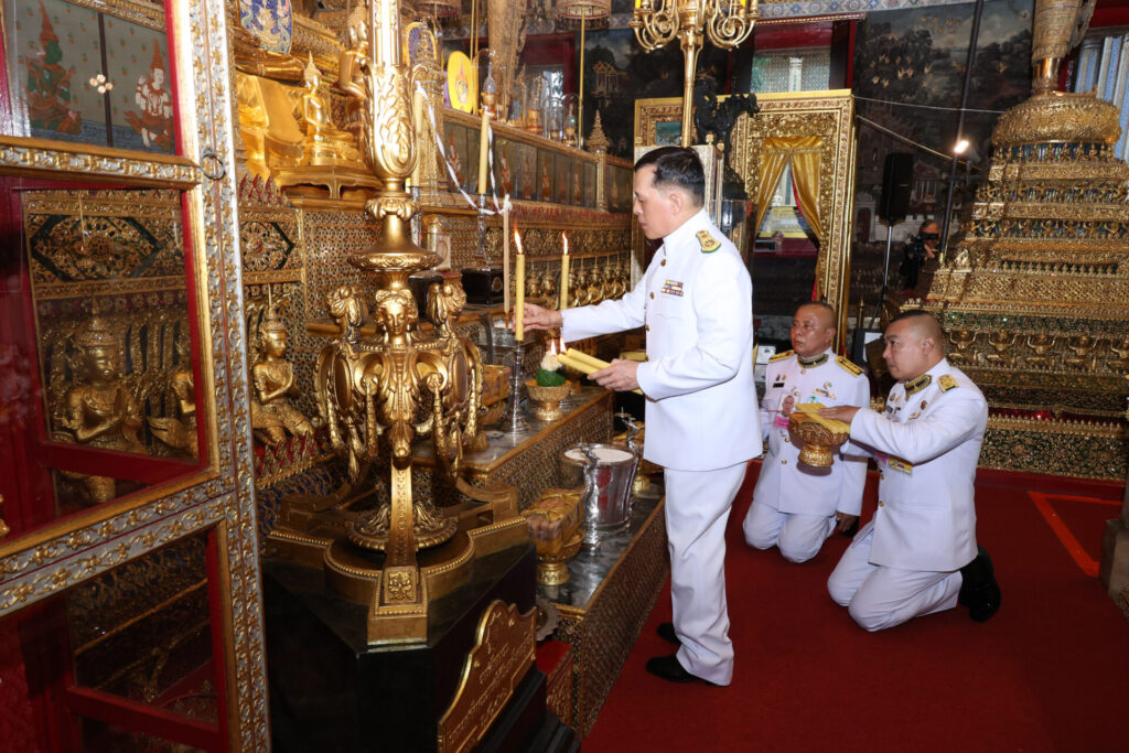 ครั้นเสด็จพระราชดำเนินถึง เสด็จเข้าพระอุโบสถ พระบาทสมเด็จพระเจ้าอยู่หัว ทรงจุดธูปเทียนเครื่องนมัสการท้ายที่นั่งบูชาพระพุทธมหามณีรัตนปฏิมากร พระพุทธยอดฟ้าจุฬาโลกย์ และพระพุทธเลิศหล้านภาไลย