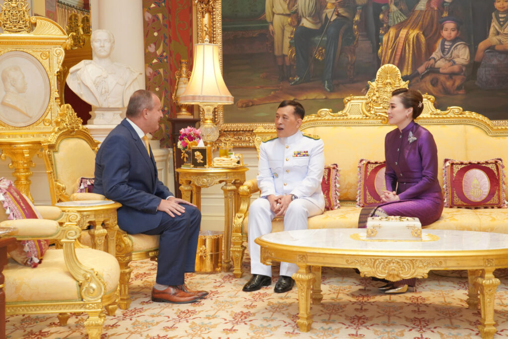 จากนั้น พระราชทานพระบรมราชวโรกาสให้ นายชานโดร์ ชีโปซ เอกอัครราชทูตฮังการีประจำประเทศไทย ซึ่งพระราชทานพระบรมราชวโรกาสให้เข้าเฝ้าทูลละอองธุลีพระบาท ถวายอักษรสาส์นตราตั้ง เมื่อวันที่ ๑๖ มิถุนายน ๒๕๖๕ เฝ้าทูลละอองธุลีพระบาท กราบบังคมทูลลา ในโอกาสที่จะพ้นจากหน้าที่. 211 สำนักข่าวไทย