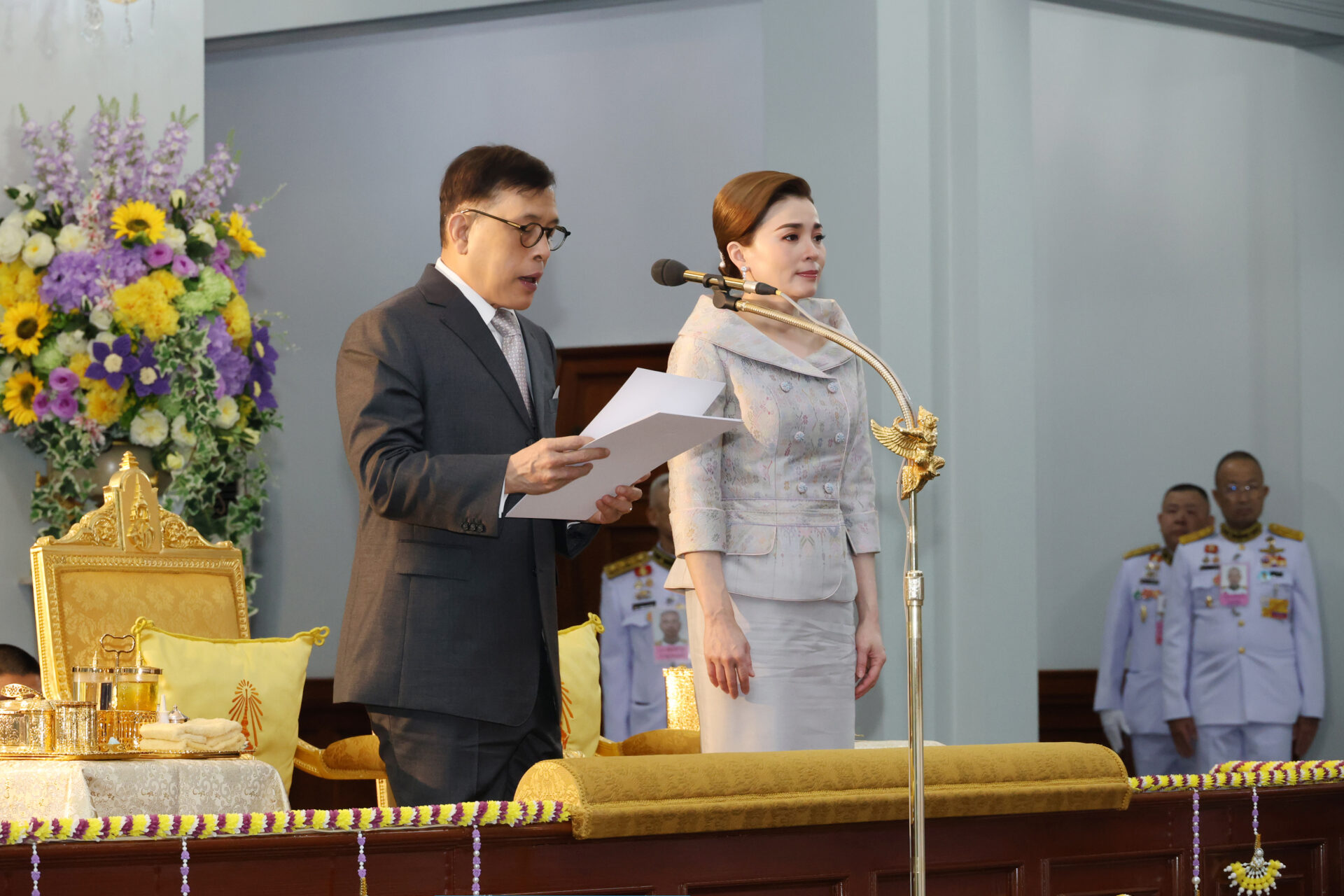 สมเด็จพระนางเจ้า ฯ พระบรมราชินี ทรงปฏิบัติพระราชกรณียกิจเคียงข้างพระบาทสมเด็จพระเจ้าอยู่หัว ด้วยพระวิริยอุตสาหะ ทั้งด้านการทหาร การทำนุบำรุงศิลปวัฒนธรรม และการต่างประเทศ โดยเฉพาะอย่างยิ่งทรงพระปรีชาสามารถด้านภาษาและการสื่อสาร ทรงใช้ภาษาไทยและภาษาต่างประเทศ โดยเฉพาะภาษาอังกฤษและภาษาฝรั่งเศสอย่างแตกฉาน ทั้งยังทรงใช้ประกอบในการปฏิบัติพระราชกรณียกิจสำคัญต่าง ๆ ที่โดยเสด็จพระบาทสมเด็จพระเจ้าอยู่หัว ไปทรงเยือนต่างประเทศ ทรงรับประมุขและผู้นำประเทศต่าง ๆ และพระราชทานพระราชวโรกาสให้บุคคลสำคัญและทูตานุทูตต่างประเทศ เฝ้าทูลละอองธุลีพระบาท อีกทั้งยังทรงดำรงพระองค์เป็นทูตทางภาษาและวัฒนธรรมไทยในเวทีโลก โดยทรงมีพระราชดำรัส ทรงกล่าวสุนทรพจน์ เป็นภาษาไทยและภาษาอังกฤษ ในเวทีการประชุมต่าง ๆ เป็นที่ประจักษ์ชัดถึงพระปรีชาสามารถทางด้านภาษาและการสื่อสาร ซึ่งเป็นสิ่งที่สำคัญยิ่งในการอนุรักษ์และจรรโลงภาษาไทย สร้างความภาคภูมิใจแก่ประชาชนชาวไทยทั้งปวง.-211-สำนักข่าวไทย