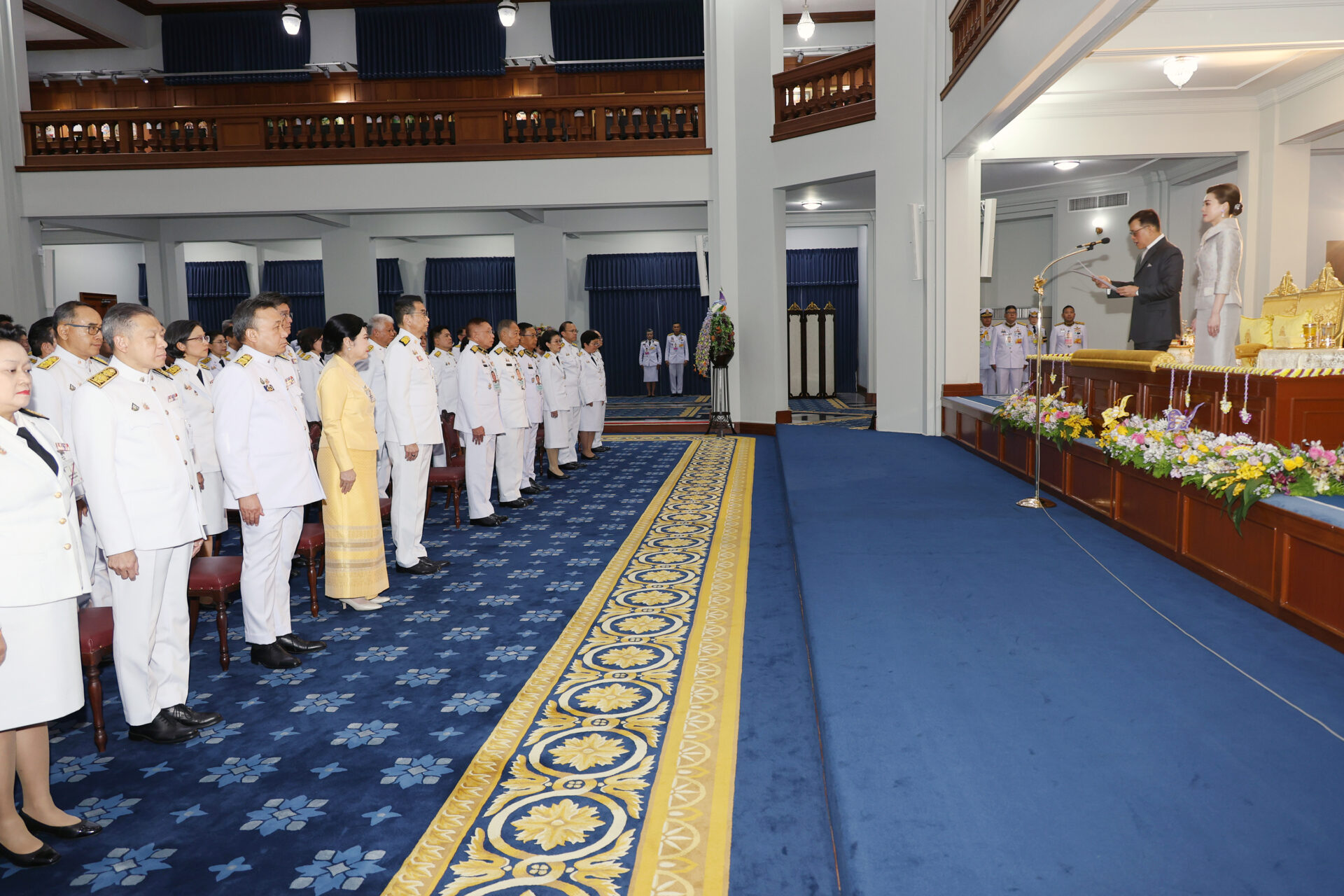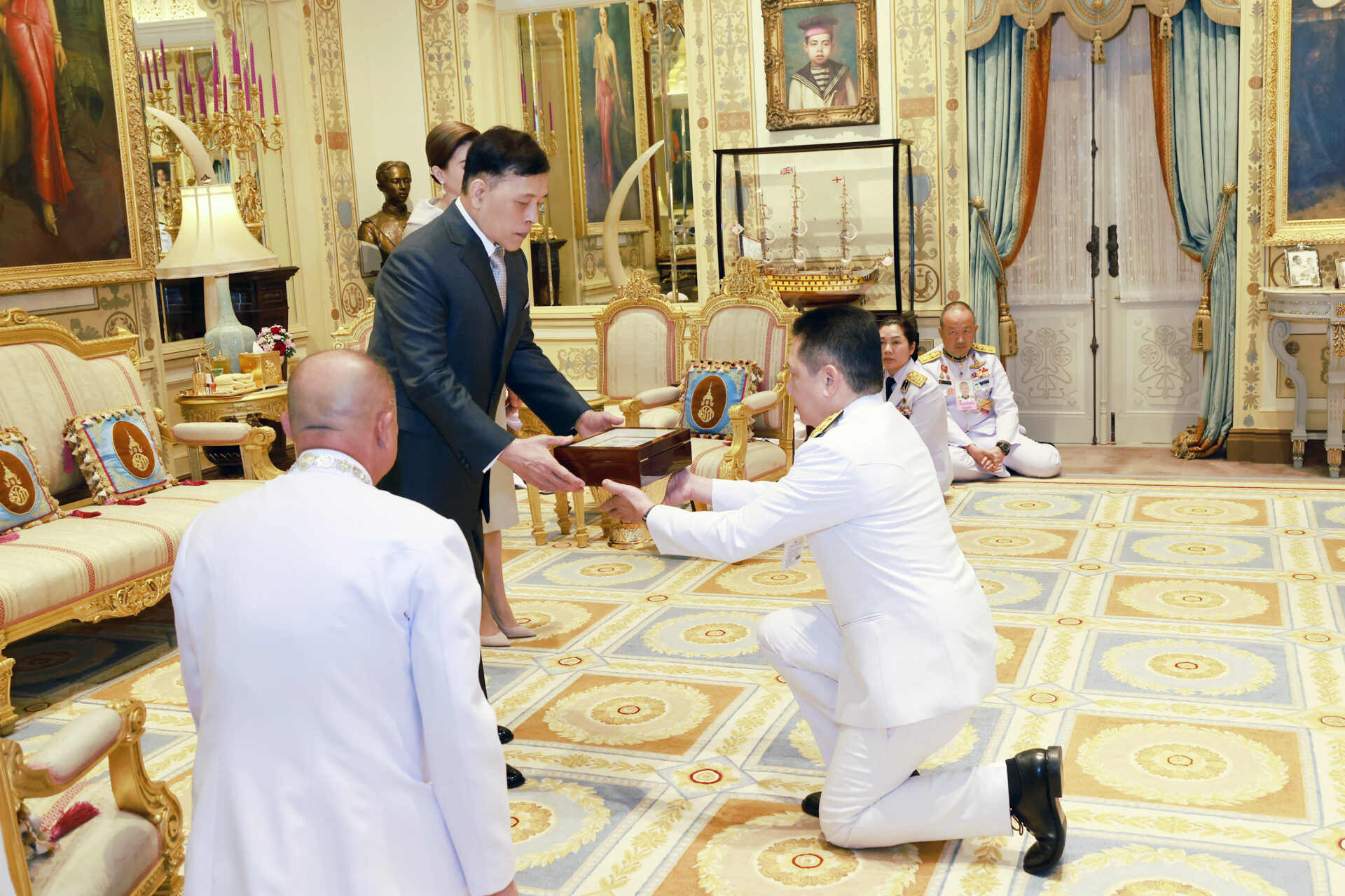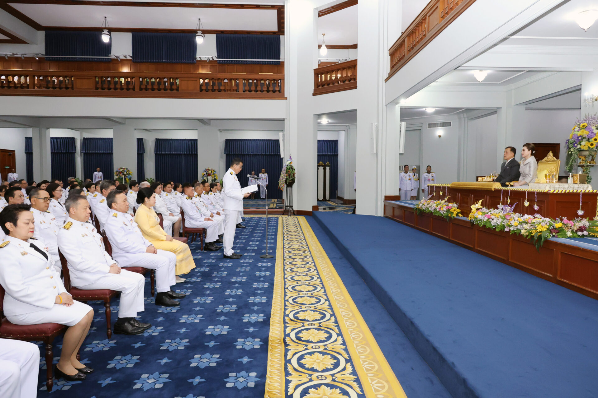ต่อมา เวลา 18.54 น. พระบาทสมเด็จพระเจ้าอยู่หัว และสมเด็จพระนางเจ้า ฯ พระบรมราชินี เสด็จออก ณ พระที่นั่งอัมพรสถาน พระราชวังดุสิต พระราชทานพระบรมราชวโรกาสให้ คณะบุคคลต่าง ๆ เฝ้าทูลละอองธุลีพระบาท ดังนี้