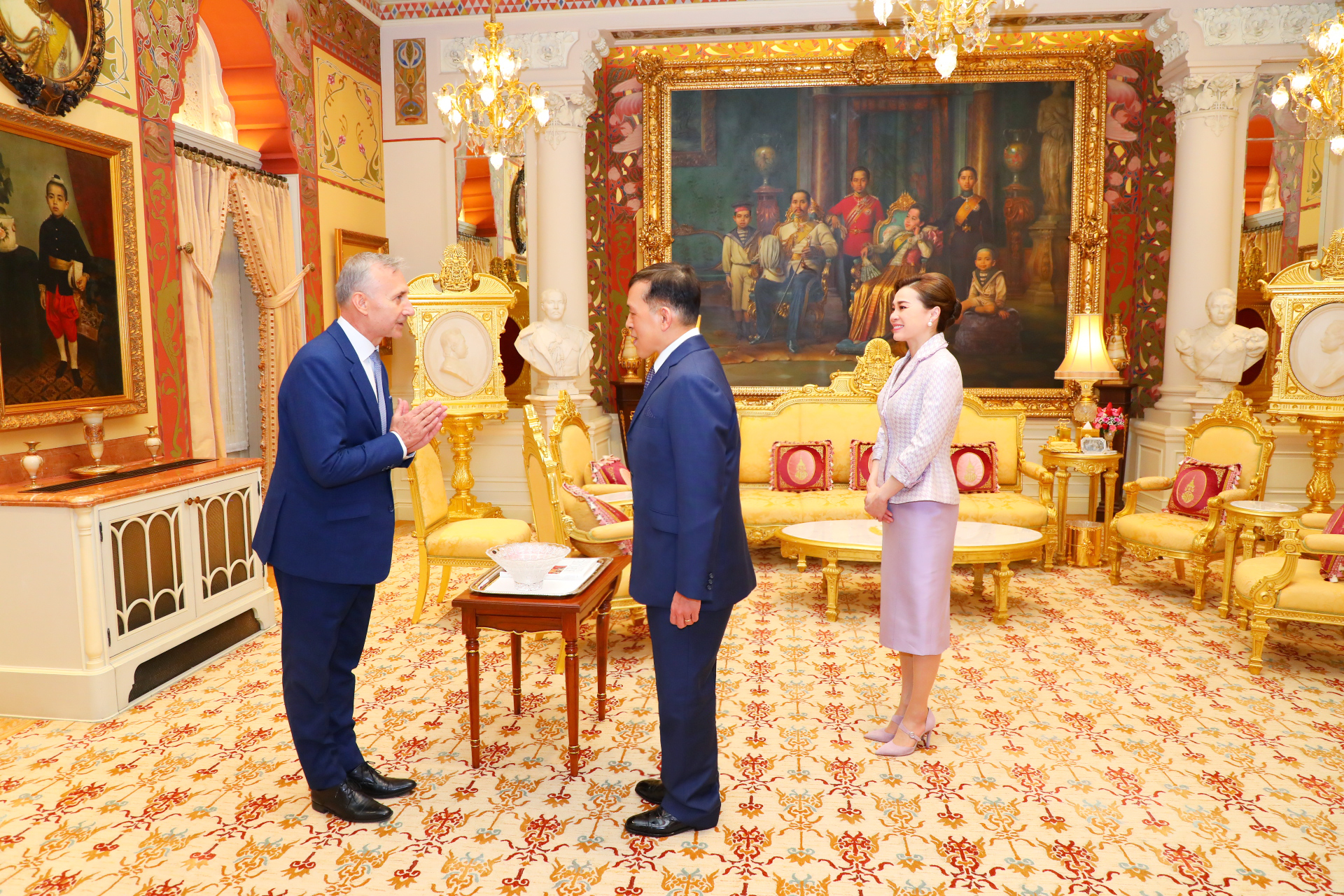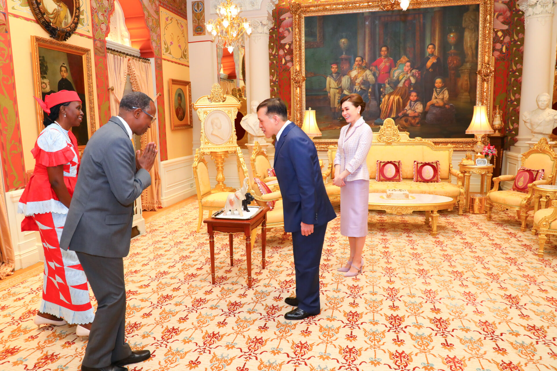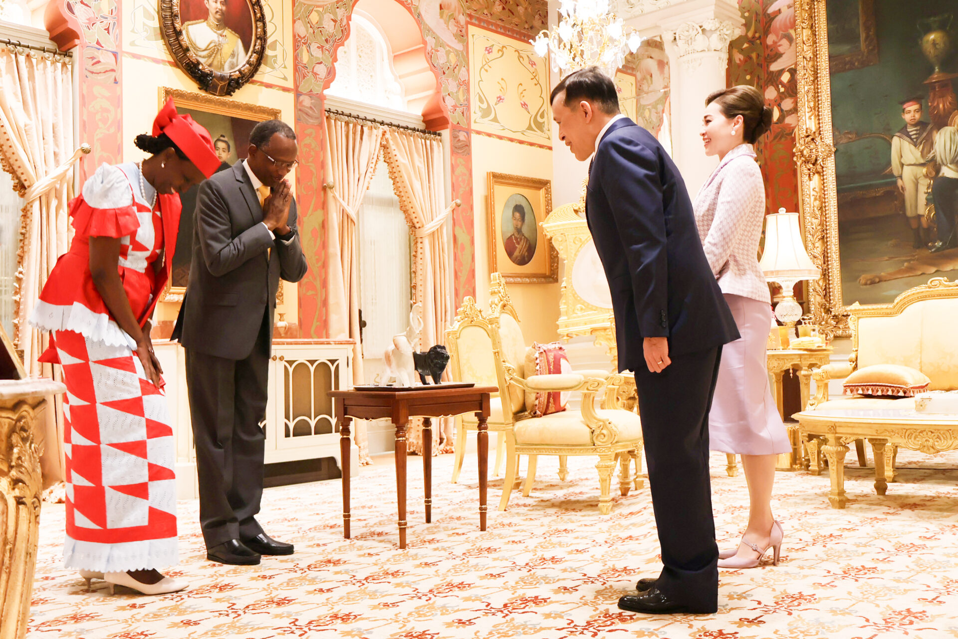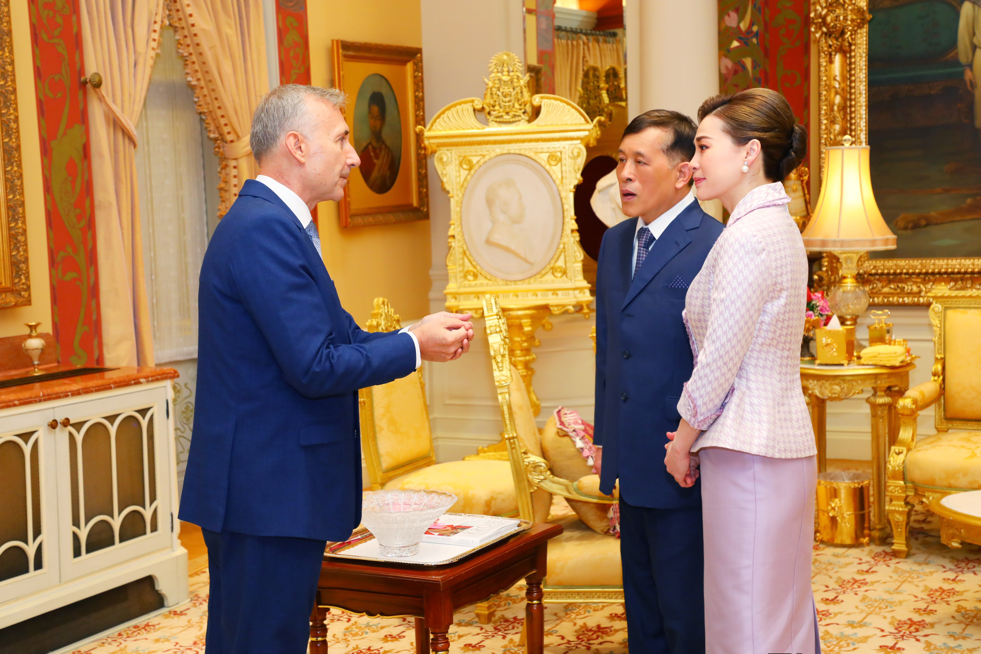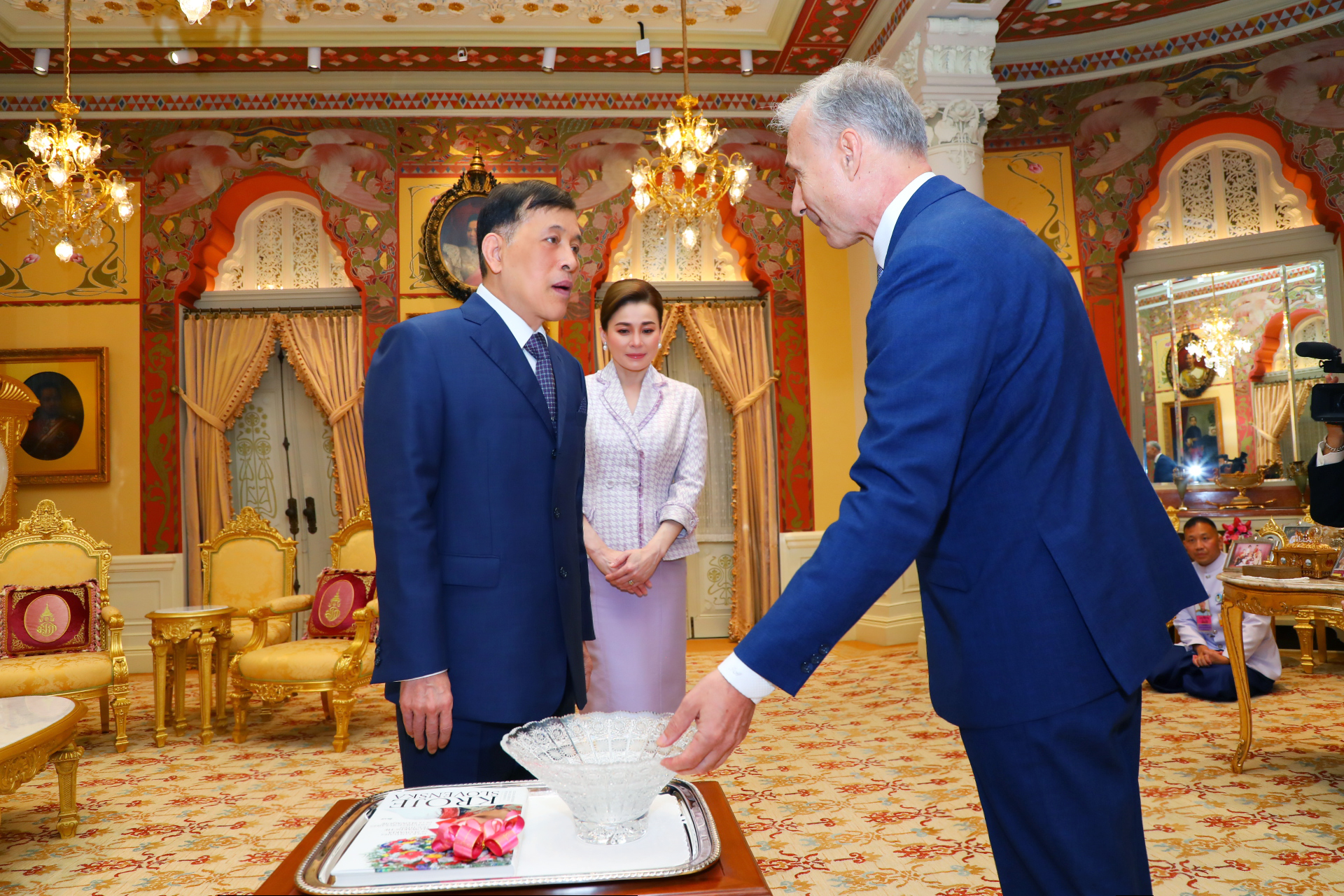 ต่อจากนั้น พระบาทสมเด็จพระเจ้าอยู่หัว และสมเด็จพระนางเจ้า ฯ พระบรมราชินี พระราชทานพระบรมราชวโรกาสให้ เอกอัครราชทูตต่างประเทศประจำประเทศไทย เฝ้าทูลละอองธุลีพระบาท กราบบังคมทูลลา ในโอกาสที่จะพ้นจากหน้าที่ ตามลำดับดังนี้