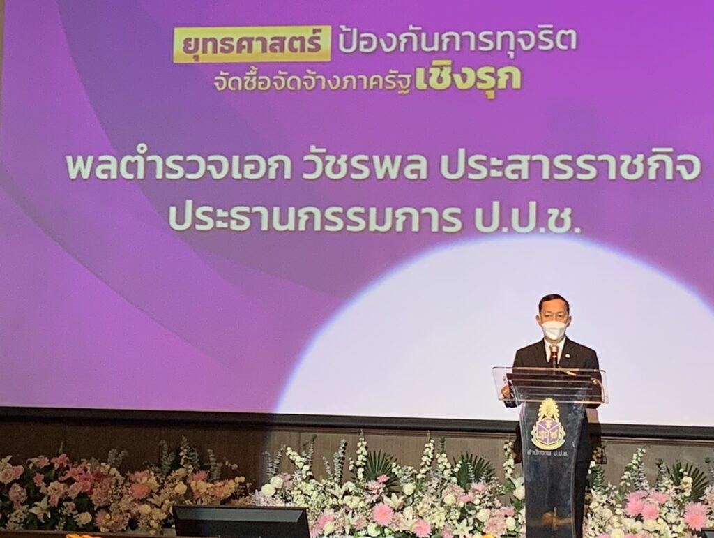 ในการสัมมนาสาธารณะ หลักสูตรนักบริหารยุทธศาสตร์การป้องกันและปราบปรามการทุจริตระดับสูง (นยปส.) รุ่นที่ 13 เรื่อง “ยุทธศาสตร์ป้องกันการทุจริตจัดซื้อจัดจ้างภาครัฐเชิงรุก” ซึ่งมี พล.ต.อ.วัชรพล ประสารราชกิจ ประธานคณะกรรมการป้องกันและปราบปรามการทุจริตแห่งชาติ (ป.ป.ช.) เป็นประธานเปิดการประชุม