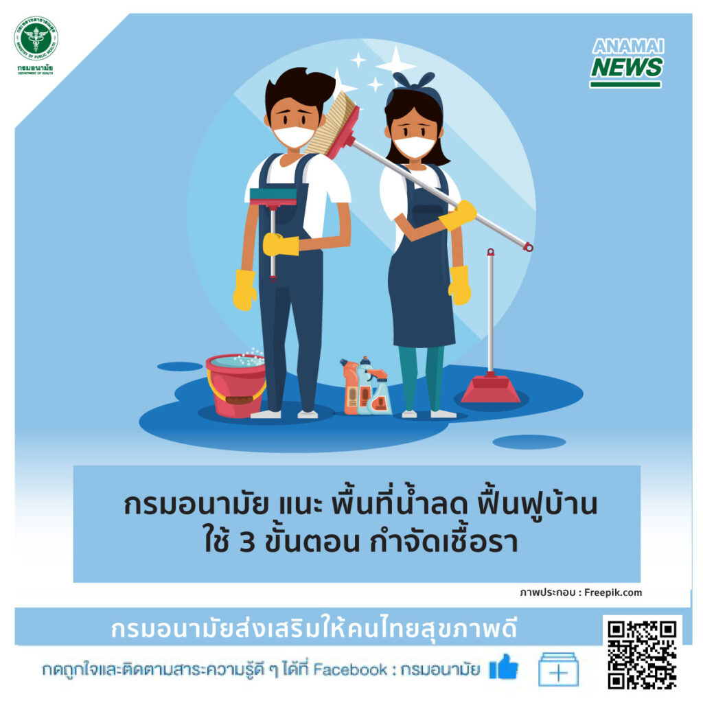 นายแพทย์สุวรรณชัย วัฒนายิ่งเจริญชัย อธิบดีกรมอนามัย กล่าวว่า จากอิทธิพลพายุมู่หลานที่พัดกระหน่ำจังหวัดเชียงราย ส่งผลให้หลายพื้นที่ได้รับความเสียหายผลจากน้ำกัดเซาะ พื้นที่นาของชาวเกษตรกรได้รับผลกระทบ ทำให้น้ำท่วมขังเป็นจำนวนมาก ขณะนี้สถานการณ์น้ำท่วมกลับคืนสู่สภาวะปกติ ประชาชนควรเร่งทำความสะอาดบ้านเรือน และสถานที่สาธารณะต่างๆ รวมถึงสถานที่ผลิตและจำหน่ายอาหาร อาทิ ตลาดสด ร้านอาหาร มินิมาร์ท ที่ได้รับผลกระทบ เพราะในช่วงน้ำท่วมจะพัดพาสิ่งสกปรกมาจากทุกสารทิศ ทั้งโคลนตม ขยะ วัสดุ สิ่งของต่างๆ ส่งผลให้เกิดการหมักหมม อาจเป็นสาเหตุให้เกิดการระบาดของโรคได้ เพื่อสุขอนามัยที่ดีของประชาชน จึงต้องมีการฟื้นฟูสภาพแวดล้อมและที่พักอาศัย ด้วยการรื้อและล้างให้สะอาดปลอดภัยตามหลักสุขาภิบาล เพราะหากปล่อยไว้นานจะกลายเป็นแหล่งสะสมและแพร่กระจายของเชื้อโรค โดยเฉพาะเชื้อราที่พบได้หลังน้ำลด ตามบริเวณพื้น ฝาผนัง วอลเปเปอร์ เฟอร์นิเจอร์ ที่นอน หมอน พรม รวมถึงตู้แช่อาหาร ตู้เย็น จำเป็นต้องได้รับการรื้อและล้างทำความสะอาดอย่างเร่งด่วน ส่วนตู้ไม้ที่ชำรุดเสียหายไม่สามารถใช้งานได้อีก ควรรวบรวมไว้ในแหล่งเดียวกัน เพื่อรอการกำจัดจากหน่วยงานราชการต่อไป