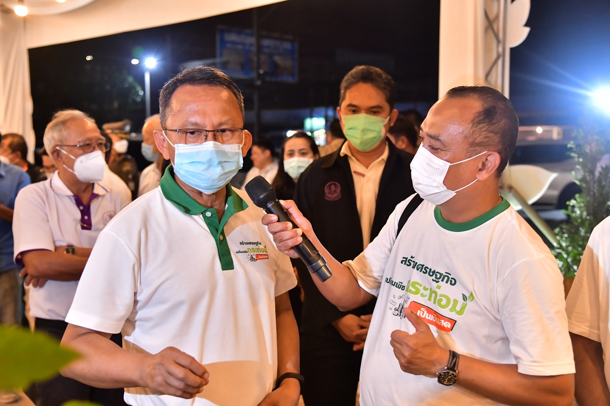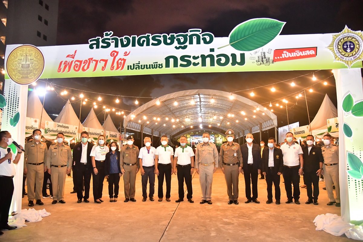ต่อมาเวลา 19.00 น. นายสมศักดิ์ และคณะ ได้เดินทางไปยังโรงแรมไดมอน พลาซ่า โฮเทล เพื่อเปิดงาน “สร้างเศรษฐกิจเพื่อชาวใต้ เปลี่ยนพืชกระท่อม เป็นเงินสด” นายสมศักดิ์ ได้รับชมผลิตภัณฑ์ต่างๆ ที่นำมาจัดแสดง และกล่าวว่า ตนได้ให้ ป.ป.ส. ตั้งคณะทำงานเพื่อติดตามกับทาง อย. และอยากให้บริษัท ผู้ประกอบการ พ่อค้าแม่ค้า รวมตัวกันมาลงชื่อที่ ป.ป.ส. และส่งตัวแทนไปคุยกับ อย. ซึ่งตนจะไปด้วย เพื่อให้รู้ว่ายังติดขัดอะไรบ้าง ถึงยังทำเป็นผลิตภัณฑ์ต่างๆ ไม่ได้ ที่ผ่านมาตนพยายามสนับสนุนการวิจัยพัฒนามาตลอด วันนี้ตนได้พบกับพี่น้องที่ทำผลิตภัณฑ์เพื่อต่อยอด ซึ่งตนเชื่อว่า เราพัฒนาให้มีราคาได้ ตนและ ป.ป.ส.จะเป็นกำลังสำคัญในการไปหารือกับ อย. เพื่อให้แนวทางต่างๆ สำเร็จทะลุทะลวงไปได้ ผลิตภัณฑ์ของเราเข้าตามตรอกออกตามประตู กฎหมายที่เราทำสมบูรณ์