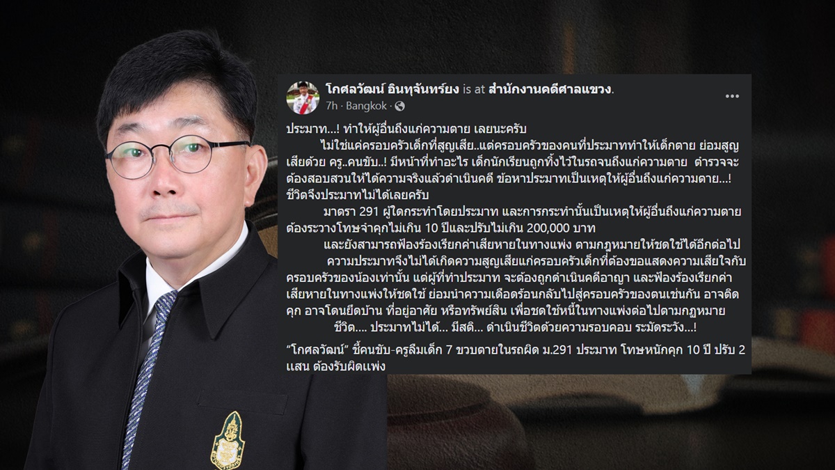 นายโกศลวัฒน์ ชี้ว่า “ความประมาทไม่ได้เกิดความสูญเสียแก่ครอบครัวเด็กที่ต้องขอแสดงความเสียใจกับครอบครัวของน้องเท่านั้น แต่ผู้ที่ทำประมาท จะต้องถูกดำเนินคดีอาญา และฟ้องร้องเรียกค่าเสียหายในทางแพ่งให้ชดใช้ ย่อมนำความเดือดร้อนกลับไปสู่ครอบครัวของตนเช่นกัน อาจติดคุก อาจโดนยึดบ้าน ที่อยู่อาศัย หรือทรัพย์สิน เพื่อชดใช้หนี้ในทางแพ่งต่อไปตามกฎหมาย ชีวิต…ประมาทไม่ได้ มีสติ ดำเนินชีวิตด้วยความรอบคอบ ระมัดระวัง”