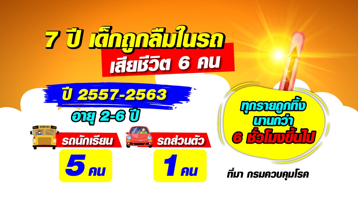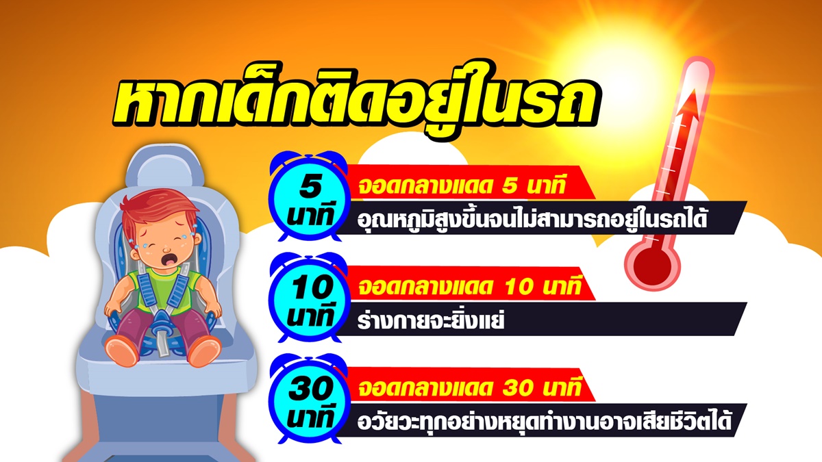 ข้อมูลจาก นพ.อดิศักดิ์ ผลิตผลการพิมพ์ สถาบันแห่งชาติเพื่อการพัฒนาเด็กและครอบครัว มหาวิทยาลัยมหิดล ระบุว่า การเสียชีวิตของเด็กที่ถูกลืมไว้ในรถ ส่วนใหญ่เกิดจากฮีทสโตรก หรือโรคลมแดด โดยจะมีอาการผิวหนังเริ่มแห้ง เส้นเลือดขยายตัว หัวใจเต้นเร็วกว่าปกติ เกิดภาวะเลือดเป็นกรด สมองบวม หมดสติ และเสียชีวิต. – สำนักข่าวไทย