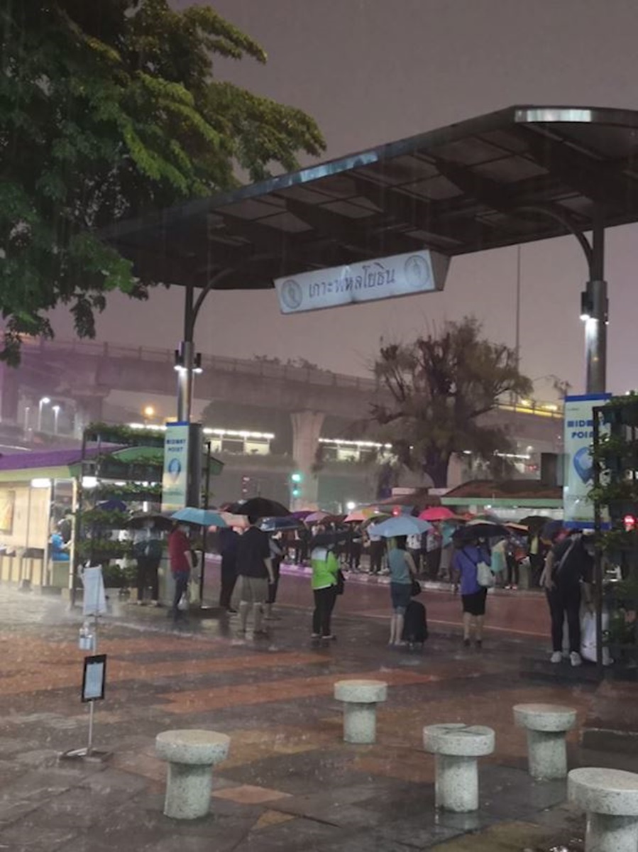 สำหรับประชาชนที่ต้องใช้รถโดยสารสาธารณะ เช่น รถเมล์ รถตู้ ได้รับความเดือดร้อนอย่างหนัก เนื่องจากความล่าช้าของรถโดยสาร กว่าจะลุยน้ำท่วมขัง ฝ่ารถติดเข้ามารับผู้โดยสาร ทำให้ผู้โดยสารต้องติดค้าง ยืนเบียดหลบฝนกันแน่นขนัดบนบีทีเอส จตุจักร เพื่อรอขึ้นรถตู้กลับบ้าน ขณะที่บริเวณเกาะพหลโยธิน มีประชาชนกางร่มยืนรอรถเมล์จำนวนมาก