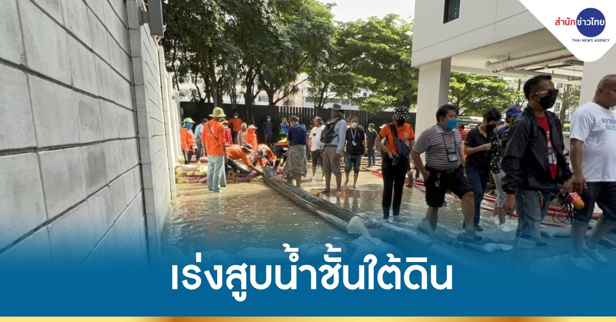 กทม. 11 ก.ย.-เจ้าหน้าที่ กทม. เร่งเครื่องสูบน้ำออกจากลานจอดรถชั้นใต้ดินคอนโด ย่านสะพานใหม่ ด้านนิติคอนโด เร่งหาทางเยียวยาลูกบ้านที่รถยนต์ถูกน้ำท่วม