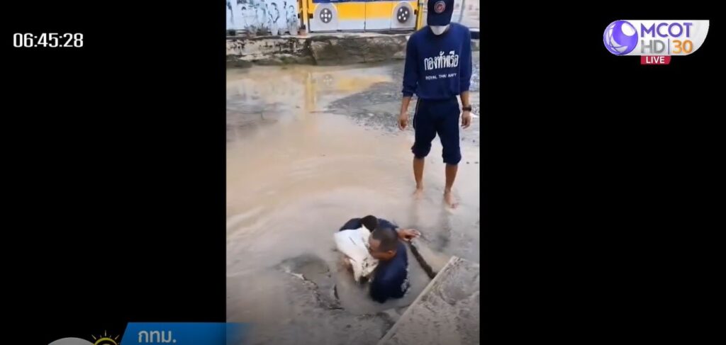 15 ก.ย. – ทหารมุดท่อเจอกระสอบทรายถูกทิ้งในท่อระบายน้ำเขตลาดกระบัง ถ.หลวงแพ่ง ย่านตลาดหัวตะเข้ จำนวนมาก พบเป็นต้นเหตุน้ำท่วมขัง ส่วน จ.นนทบุรี ฝนถล่ม ไฟฟ้าดับทั้งตลาด พ่อค้าแม่ค้าต้องจุดเทียนขายของอย่างทุลักทุเล
