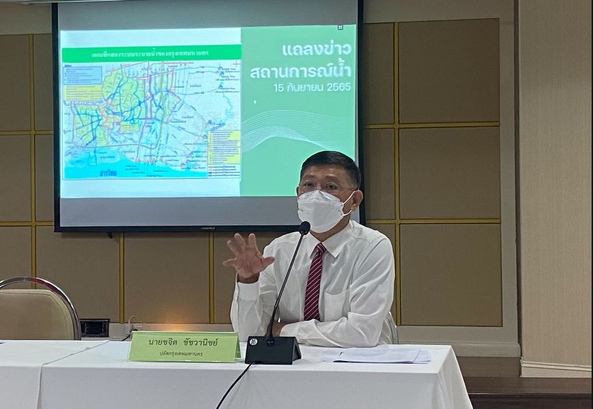 ผศ.ดร.ทวิดา กมลเวชช รองผู้ว่าฯ กทม. และนายขจิต ชัชวานิชย์ ปลัด กทม. แถลงสถานการณ์น้ำในพื้นที่ กทม. โดยปลัด กทม. เปิดเผยว่า สถานการณ์น้ำท่วมขังในพื้นที่ขณะนี้มี 2 ส่วน คือบริเวณหลักสี่ ดอนเมือง บางเขน ซึ่งน้ำสูงสุดที่คลองเปรมประชากร จากระดับสูงสุดที่ผ่านมา คือ 1.56 เมตร จากระดับน้ำทะเลปานกลาง ปัจจุบันเหลือ 0.68 เมตร จากระดับน้ำทะเลปานกลาง ทำให้ในพื้นที่โซนบางเขนตอนนี้ในซอยลดลงเรื่อย ๆ แล้ว คาดว่าถ้าฝนไม่ตกหนักลงมาซ้ำภายในอีก 2-3 วัน จะแห้งเป็นปกติทั้งหมด ส่วนที่ 2 พื้นที่น้ำท่วมเขตลาดกระบัง ประเวศ หนองจอก หลังจากความร่วมมือจากทุกภาคส่วน ทำให้วันนี้น้ำในคลองลดไปประมาณ 50 เซนติเมตร จากการเร่งระบายน้ำออกไป 3 ทาง คือกรมชลประทานช่วยผันน้ำออกไปที่ฉะเชิงเทรา และทางสมุทรปราการ และส่วนหนึ่งก็ระบายออกมาทางสถานีสูบน้ำพระโขนง คาดว่าหากฝนไม่ตกหนักมากในพื้นที่มาซ้ำอีกจะช่วยให้พื้นที่ลาดกระบัง กลับมาแห้งเป็นปกติใน 7 วัน