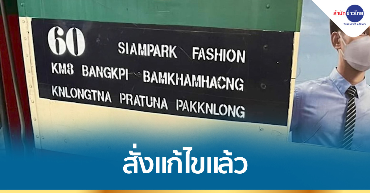 กรุงเทพฯ 20 ก.ย. – สุดงง! ป้ายข้อความบอกเส้นทางภาษาอังกฤษข้างรถเมล์ สาย 60 บางตัวอักษรตกหล่น จนอ่านไม่เป็นคำ ล่าสุด ผอ.ขสมก. สั่งแก้ไขแล้ว