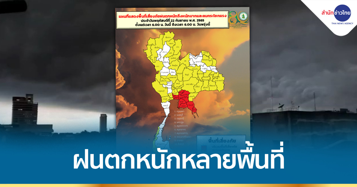 กรุงเทพฯ 22 ก.ย. – กรมอุตุฯ เตือนประเทศไทยฝนตกหนักถึงหนักมากกับลมกระโชกแรงบางแห่งในภาคเหนือ อีสาน ภาคกลาง รวมทั้ง กทม.และปริมณฑล รวมทั้งภาคตะวันออก โดย กทม.-ปริมณฑล ฝนฟ้าคะนอง 70% ของพื้นที่