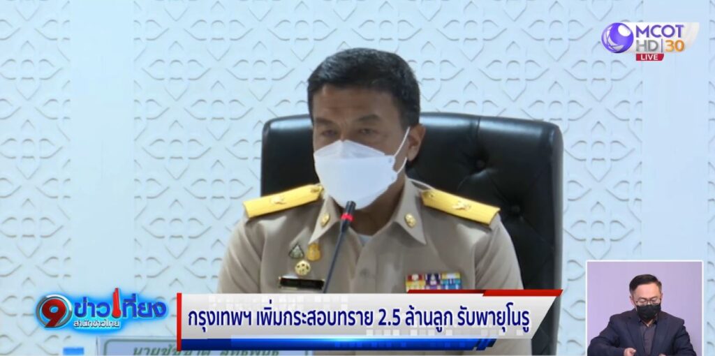 นายชัชชาติ สิทธิพันธุ์ ผู้ว่าฯ กทม. กำชับให้เร่งระบายน้ำในคลองต่างๆ ให้มากที่สุด และเสริมคันกั้นน้ำบริเวณจุดอ่อนน้ำท่วม ซึ่งขณะนี้ได้จัดสรรงบประมาณเพื่อซื้อกระสอบทราย 2.5 ล้านกระสอบแล้ว โดยจะกระจายให้ชุมชนช่วยกัน วางป้องกันกันเองในเบื้องต้นเพราะชุมชนจะรู้ว่าพื้นที่ไหนเสี่ยงน้ำท่วม โดย กทม.จะสนับสนุนอุปกรณ์ ช่วยบรรเทาความเสียหาย วางแนวกระสอบทรายกั้นพื้นที่ต่างๆ ให้ครอบคลุมทุกจุดฟันหลอและเพิ่มแนวป้องกันให้สูงขึ้น จากเดิม และให้เจ้าหน้าที่ทำฉากทัศน์ ถึงความเป็นไปได้ของเส้นทางพายุว่าจะกระทบกับพื้นที่ส่วนใดบ้าง โดยเฉพาะการระบายน้ำของเขื่อนป่าสักชลสิทธิ์ และการระบายน้ำมาทางเจ้าพระยา ส่วนจำนวนกระสอบทรายขณะนี้มีความพร้อมแล้ว 200,000 กระสอบ และเพิ่มอีก 2.5 ล้านกระสอบ ที่จัดสรรงบฯ ล่าสุด ซึ่งจะร่วมกับหลายหน่วยงานเรียงกระสอบทรายริมแม่น้ำเจ้าพระยา และตั้งวางเครื่องสูบน้ำ และเตรียมจุดพักฉุกเฉินไว้รองรับด้วย