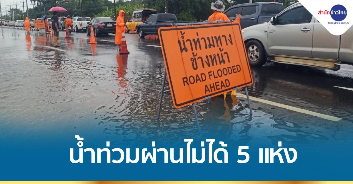 กองบังคับการตำรวจทางหลวง สรุปรายงานสถานการณ์อุทกภัยบนทางหลวง พื้นที่จังหวัดที่มีน้ำท่วม/ดินสไลด์ 9 จังหวัด การจราจรผ่านไม่ได้ 5 แห่ง โดยมีเส้นทางดังต่อไปนี้