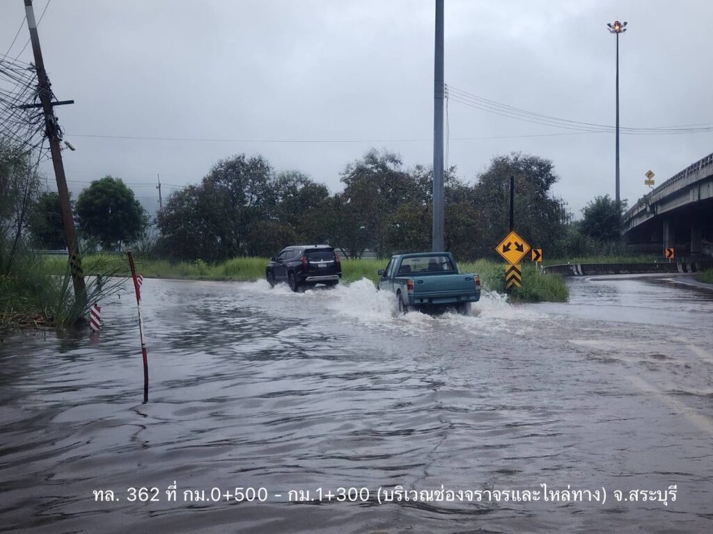 – ช่วง กม.ที่ 61+800 – กม.62+500 ระดับน้ำ 30 ซม. การจราจรผ่านได้ไม่สะดวก เจ้าหน้าที่คอยอำนวยความสะดวกด้านการจราจร