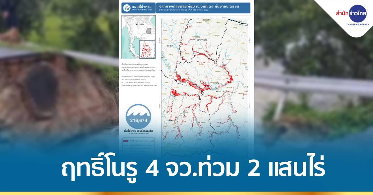 GISTDA 30 ก.ย.- GISTDA เผยข้อมูลจากดาวเทียม 4 จังหวัดอีสานตอนล่าง อุบลราชธานี ศรีสะเกษ อำนาจเจริญ และยโสธร ได้รับผลกระทบจากพายุ “โนรู” รวมทั้งสิ้น 216,674 ไร่ อุบลฯ มากที่สุด 108,365 ไร่
