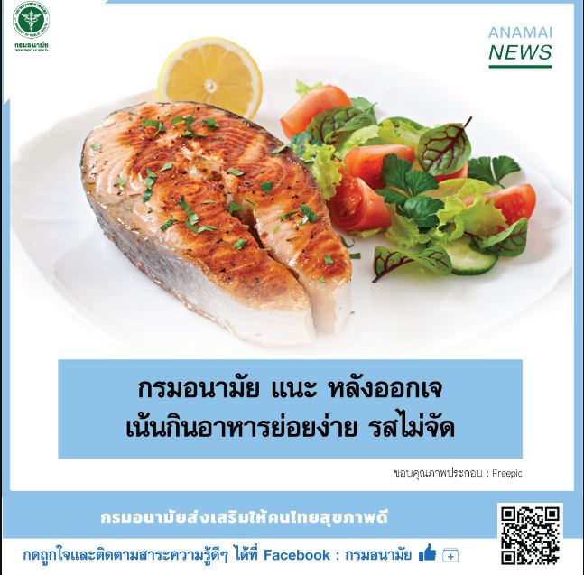 กรุงเทพฯ 4 ต.ค. – กรมอนามัย แนะหลังออกเจให้กินอาหารย่อยง่าย รสไม่จัด เพื่อปรับสภาพร่างกาย เน้นกินเนื้อปลา ไข่ นม ผัก ผลไม้ เลี่ยงเนื้อสัตว์ติดมัน เนื้อวัว เนื้อหมู ลดปัญหาท้องอืด