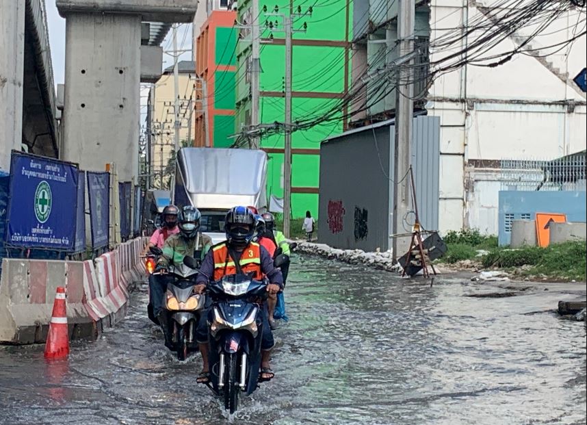 กรุงเทพฯ 4 ต.ค. – ฝนที่ตกต่อเนื่องตลอดคืนที่ผ่านมา เช้านี้ยังมีปัญหาน้ำท่วมขัง รอการระบายหลายจุด เช่น ถนนวิภาวดีรังสิตขาเข้า แยกเลี้ยวซ้าย เข้า ถนนแจ้งวัฒนะ มุ่งหน้าวงเวียนบางเขน และมีนบุรี ยังมีน้ำท่วมขัง พื้นผิวการจราจร ช่วงซ้ายสุดประมาณ 20-30 ซม. ทำให้รถยนต์ที่ใช้เส้นทางดังกล่าว ต้องชะลอตัว แล่นช้า แต่ก็สามารถผ่านไปได้
