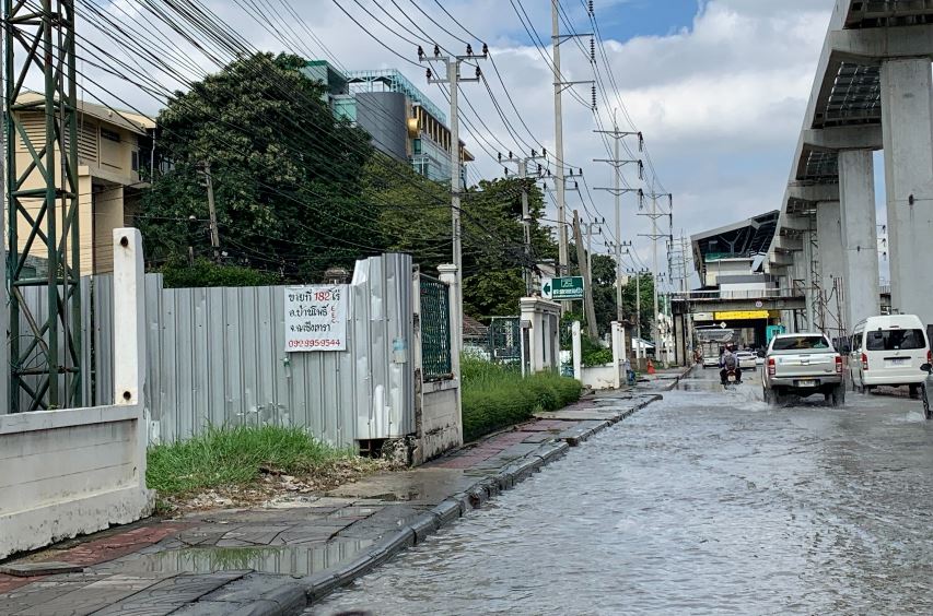 ส่วนอีกจุด บริเวณซอยแจ้งวัฒนะ 2 มุ่งหน้าวงเวียนบางเขน จุดนี้มีน้ำท่วมขังเล็กน้อย แต่ปริมาณรถมาก ช่องจราจรเหลือ 2 ช่อง เพราะมีการก่อสร้าง สถานีรถไฟฟ้าฯ ทำให้มีปริมาณรถมาก ติดสะสม และมีการนำกระสอบทรายมากั้นริมฟุตบาท เพื่อนป้องกันน้ำท่วม