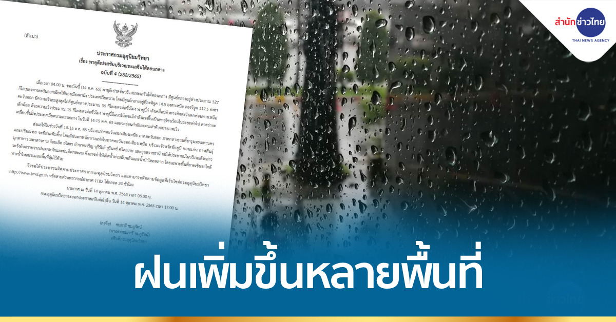 ประกาศกรมอุตุนิยมวิทยา “พายุดีเปรสชันบริเวณทะเลจีนใต้ตอนกลาง” ฉบับที่ 4 ลงวันที่ 14 ตุลาคม 2565