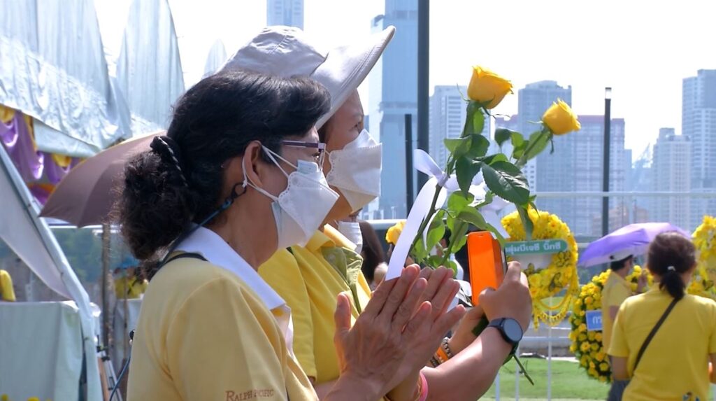 ชายอายุ 75 ปี บอกว่า ตั้งใจมาสักการะ แต่กลัวว่าจะไม่มีที่จอดรถ จึงตัดสินใจมาจากบ้านย่านยศเส แม้จะร้อน และระยะทางค่อยข้างไกลสำหรับผู้สูงอายุ แต่เมื่อมาถึงได้มาเห็น ก็รู้สึกหายเหนื่อยทันที ตั้งใจเอารูปที่ถ่ายไปให้ภรรยา และลูกหลานได้ดู และจะชวนมาด้วยกันในอนาคต ส่วนตัวรู้สึกดีไจที่ได้เห็นประชาชนเดินทางมาเป็นจำนวนมาก เพราะสิ่งที่พระองค์ได้สร้าง ได้ทำให้กับประเทศมากมายมหาศาล กว่าจะหาคำไหนมาพูดได้นอกจากคำว่า ขอบคุณ จึงอยากใช้โอกาสนี้มาถวายสักการะพระองค์ท่านอีกครั้ง