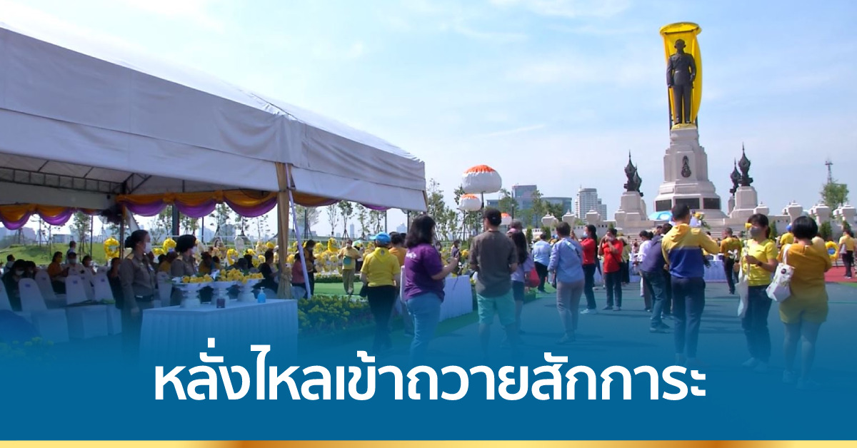 กรุงเทพฯ 14 ต.ค. – ประชาชนหลั่งไหลเข้าถวายสักการะพระบรมราชานุสาวรีย์ พระบาทสมเด็จพระบรมชนกาธิเบศร มหาภูมิพลอดุลยเดชมหาราช บรมนาถบพิตร ที่ประดิษฐานอย่างงามสง่า บริเวณอุทยานเฉลิมพระเกียรติฯ หรือสนามม้านางเลิ้งเก่า
