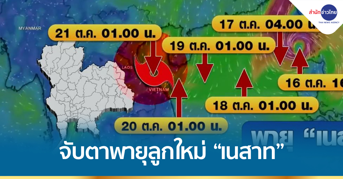 ส่วนสภาพอากาศในช่วง 7 วันข้างหน้า ยังต้องจับตาพายุโซนร้อนกำลังแรง “เนสาท” บริเวณตอนบนของประเทศฟิลิปปินส์ มีแนวโน้มจะทวีกำลังแรงขึ้น และเคลื่อนตัวลงสู่ทะเลจีนใต้ตอนบน ในวันที่ 16 ตุลาคมนี้ คาดว่าพายุนี้จะเคลื่อนผ่านตอนใต้ของเกาะไหหลำ ประเทศจีน และเคลื่อนเข้าใกล้ชายฝั่งประเทศเวียดนามตอนบน ในช่วงวันที่ 19-20 ตุลาคม หลังจากนั้นจะอ่อนกำลังลงตามลำดับอย่างรวดเร็ว อาจมีผลกระทบทำให้เกิดฝนตกในพื้นที่ภาคอีสาน