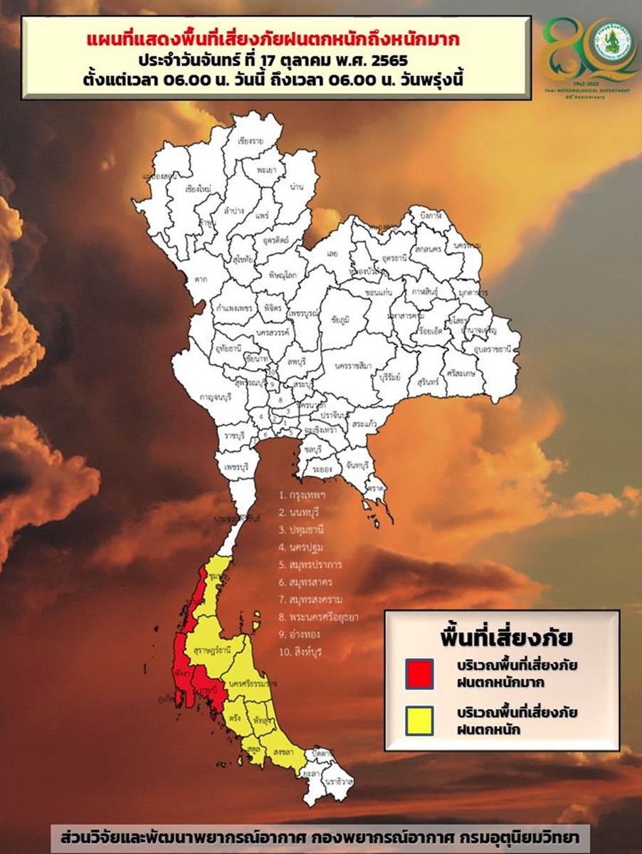 กรมอุตุฯ 17 ต.ค. – กรมอุตุฯ เผยไทยตอนบนอากาศเย็น ลมแรง และมีฝนบางแห่ง ส่วนภาคใต้ยังคงมีฝนตกต่อเนื่องและตกหนักถึงหนักมากบางแห่ง ขณะที่พายุโซนร้อนกำลังแรง “เนสาท” มีแนวโน้มทวีกำลังแรงขึ้นเป็นพายุไต้ฝุ่น