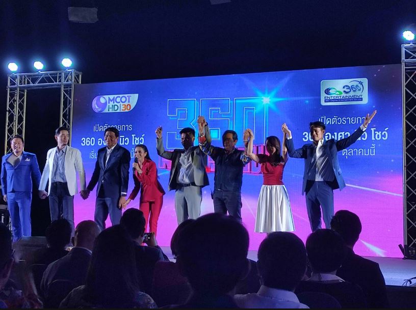 ขณะที่นายธนินวัฒน์ พัฒนวีรคุณ ประธานบริหาร บริษัท 360 องศา เอ็นเตอร์เทนเม้นท์ จำกัด กล่าวว่า บริษัท 360 เอนเตอร์เทนเม้นท์ ไม่ได้ทำรายการข่าวเท่านั้น แต่ทำหลากหลายมากกว่าข่าว มีผู้ที่มีความรู้มาช่วยขับเคลื่อนสังคม และจะสามารถขับเคลื่อนซอฟท์พาวเวอร์ได้อย่างเข้มข้น การได้ร่วมงานกับช่อง 9 MCOT HD จะเป็นเวทีหนึ่งเป็นพื้นที่เป็นแพลตฟอร์มที่ให้ทุกคนได้ประโยชน์จาก 360 องศา นิวโชว์. -สำนักข่าวไทย