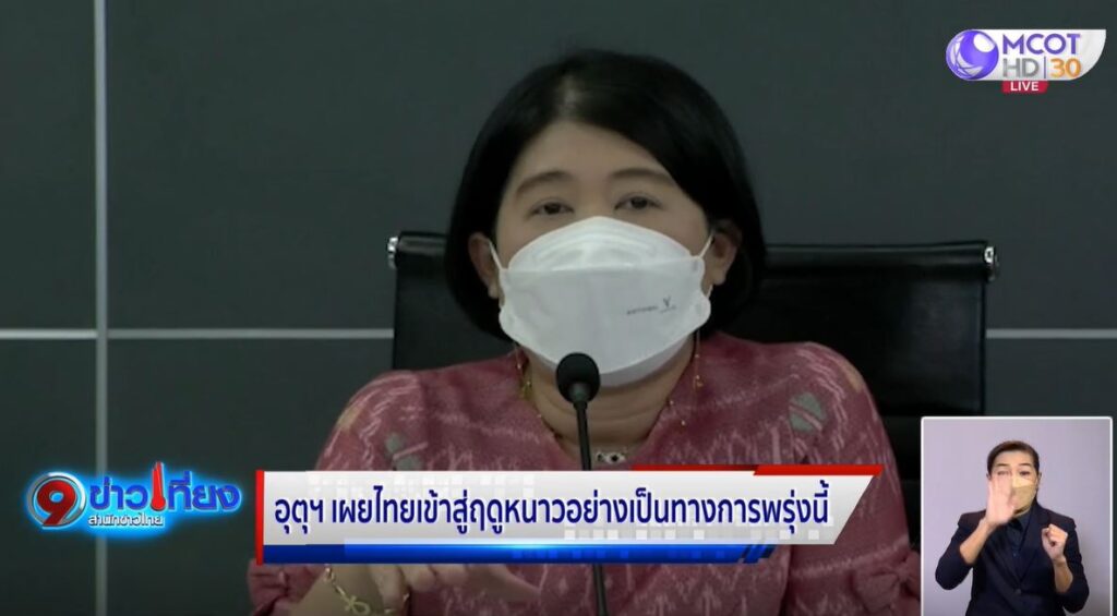 นางสาวชมภารี ชมภูรัตน์ อธิบดีกรมอุตุนิยมวิทยา กล่าวว่า ฤดูหนาวของประเทศไทยปีนี้เริ่มช้ากว่าปกติประมาณ 2 สัปดาห์ เนื่องจากการเปลี่ยนแปลงของทิศทางลมชั้นบนระดับล่างได้เปลี่ยนเป็นลมตะวันออกหรือตะวันออกเฉียงเหนือและลมชั้นบนระดับบนได้เปลี่ยนเป็นลมตะวันตก รวมถึงเกณฑ์ของอุณหภูมิและปริมาณฝนตอนบนของประเทศลดลงอย่างต่อเนื่อง ทำให้ฤดูหนาวปีนี้จะเริ่มขึ้นในวันที่ 29 ตุลาคม 2565 และจะสิ้นสุดฤดูช่วงกลางเดือนกุมภาพันธ์ 2566 บริเวณประเทศไทยตอนบนจะมีอุณหภูมิต่ำสุดเฉลี่ย 20-21 องศาเซลเซียส โดยปีนี้จะมีอากาศหนาวเย็นมากกว่าปีที่ผ่านมา ซึ่งอุณหภูมิต่ำสุดเฉลี่ยปีที่ผ่านมา 21 องศาเซลเซียส