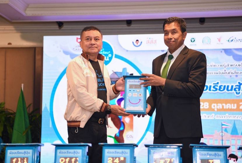 พล.อ.นิพัทธ์ ทองเล็ก คณะกรรมการบริหารแผนคณะที่ 2 สสส. ได้มอบเครื่องวัดฝุ่นละอองขนาดเล็กหรือ PM2.5 แก่สถานศึกษาต้นแบบ นำไปติดตั้งใช้วัดค่าฝุ่นในแต่ละพื้นที่แบบ Real Time เพื่อให้นักเรียนสามารถดูแลสุขภาพตนเองได้อย่างถูกต้อง สำหรับกิจกรรมในวันนี้จะเป็นการอบรมเชิงปฏิบัติการ “ห้องเรียนสู้ฝุ่น” ในพื้นที่ กทม.ซึ่งจะเป็นกระบวนการเรียนรู้ผ่านฐานกิจกรรมต่าง ๆ ให้กับครูและบุคลากรทางการศึกษาใช้เป็นแนวทางในการจัดกิจกรรมการเรียนรู้ สู้ภัยฝุ่นในโรงเรียน สร้างพลเมืองตื่นรู้ (Active Citizen) เพื่อให้นักเรียนเกิดความเข้าใจในสถานการณ์วิกฤติและสามารถป้องกันตัวเองอย่างปลอดภัย