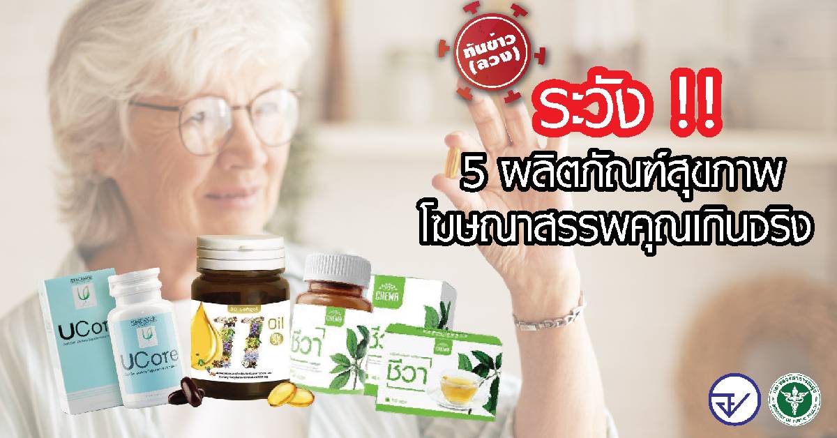 กรุงเทพฯ 1 พ.ย. – อย.พบ 5 ผลิตภัณฑ์สุขภาพ โฆษณาสรรพคุณเกินจริง เตือนผู้บริโภคอย่าหลงเชื่อ อาจเสียเงินเปล่า แนะพบแพทย์รับการรักษาที่ถูกต้อง