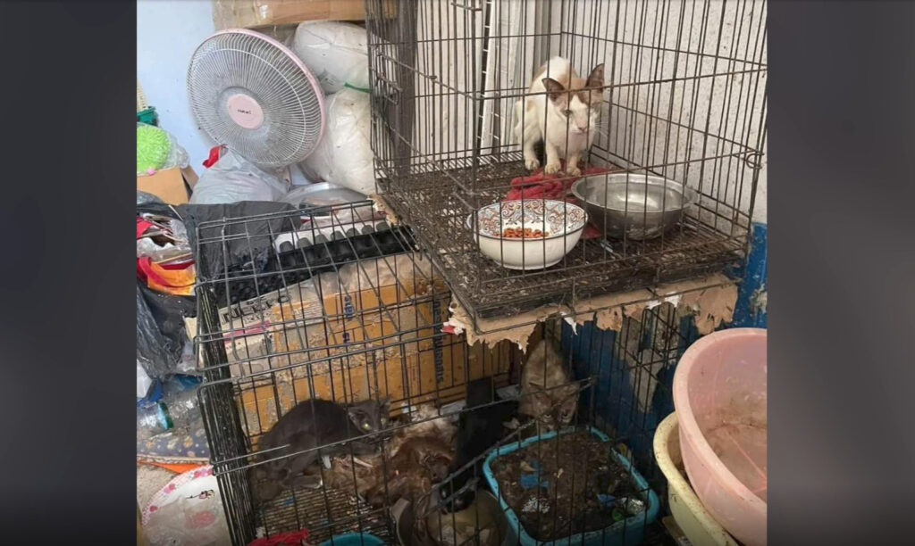 ทั้งนี้บ้านหลังดังกล่าว สภาพภายนอกคล้ายบ้านร้าง หญ้ารกสูงท่วมหัว ขยะเต็มหน้าบ้าน มีซองอาหารแมวมากมาย รวมทั้งมีซากแมวห่อกระดาษใส่ถุงพลาสติกวางอยู่หน้าบ้าน 1 ถุง ข้างในบ้านมีกลิ่นเหม็นสาบรุนแรง สภาพเหมือนบ้านร้าง มีทั้งฝุ่น หยากไย่ ฝ้าเพดานพัง ที่พื้นเต็มไปด้วยขยะ และซากแมวในถุงดำ แมวที่ยังมีชีวิตอยู่ถูกขังในกรงในสภาพน่าเวทนาเพราะผอมโซมาก โดยขังรวมในกรงที่มีซากแมวตายอยู่ในนั้นด้วย