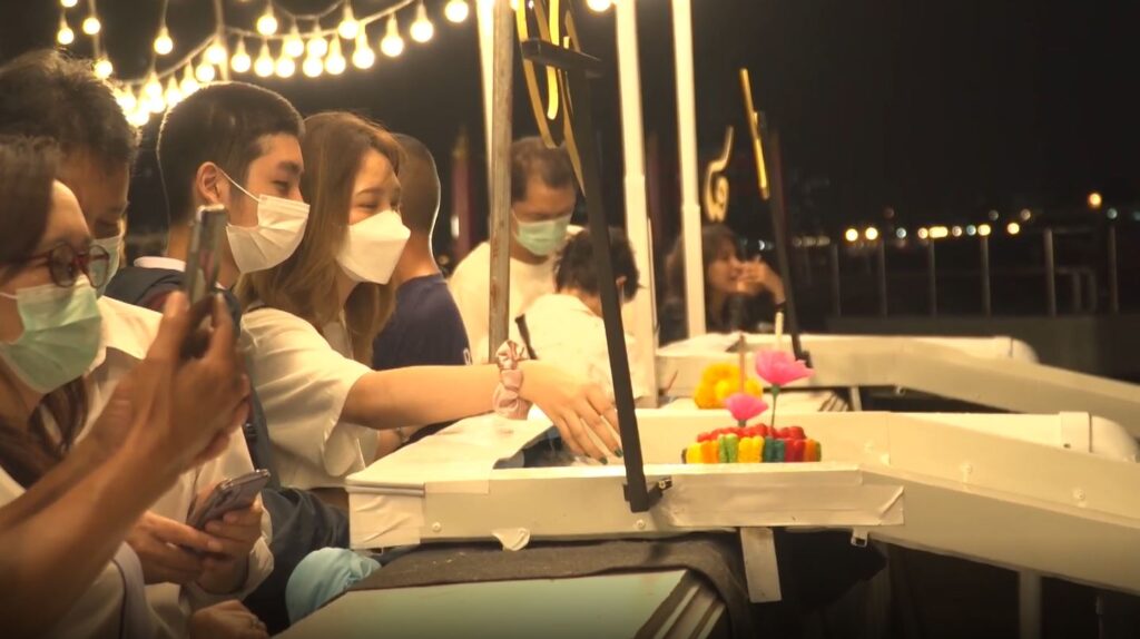 ยิ่งค่ำบรรยากาศลอยกระทงที่วัดอรุณราชวราราม ยิ่งคึกคักและครึกครื้นมากขึ้น นักท่องเที่ยวทั้งไทยและต่างชาติเดินทางมาเป็นจำนวนมาก เพราะวัดอรุณฯ ถือเป็นแลนด์มาร์กสำคัญของกรุงเทพฯ และประเทศไทย โดยเฉพาะเทศกาลลอยกระทง ซึ่งปีนี้ กระทรวงวัฒนธรรมจัดงานภายใต้แนวคิด ลอยกระทงวิถีใหม่ สืบสาน ประเพณีไทย สู่ความยั่งยืน เน้นคุณค่า สาระ เพื่อเผยแพร่ความงดงามของประเพณีสู่สายตานักท่องเที่ยว ปีนี้ลอยกระทงสุดเก๋ และปลอดภัย ลอยกระทงลงแม่น้ำเจ้าพระยาผ่านสไลเดอร์บริเวณท่าน้ำวัดอรุณฯ พร้อมคุมเข้มงานปลอดโควิด-19 รักษามาตรการความปลอดภัยทางบก-ทางน้ำ ชวนรักษาสิ่งแวดล้อม ลดขยะด้วยกันใช้กระทงร่วมกัน