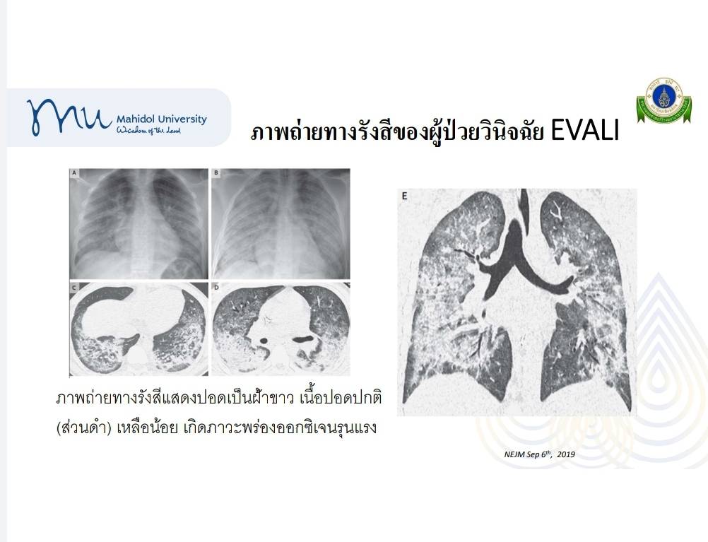 ศ.นพ.วินัย วนานุกูล หัวหน้าภาควิชาอายุรศาสตร์ คณะแพทยศาสตร์โรงพยาบาลรามาธิบดี มหาวิทยาลัยมหิดล พร้อมด้วย อ.พญ.นภารัตน์ อมรพุฒิสถาพร หัวหน้าสาขาโรคระบบการหายใจและเวชบำบัดวิกฤตระบบหายใจ และ อ.นพ.ธนัญชัย เพชรนาค สาขาโรคระบบการหายใจและเวชบำบัดวิกฤต แถลง ไทยพบป่วยปอดอักเสบรุนแรง (อิวารี่) อีก! จากบุหรี่ไฟฟ้า หวั่นคนไม่รู้อันตราย ว่าการพบภาวะปอดอักเสบที่มีความสัมผัสกับการสูบบุหรี่ไฟฟ้า หรือ E-cigarette or Vaping product use Associated Lung Injury (EVALI) หรืออิวารี่ เริ่มพบในปลายปี 2562 หรือ 2019 เดียวกับช่วงสถานการณ์โควิด แต่ขณะนั้นยังไม่มีรายงานอย่างชัดเจน จนกระทั่งเมื่อเดือนกรกฎาคมที่ผ่านมา เริ่มพบภาวะอิวารี่อย่างชัดเจน โดยที่ รพ.รามาธิบดี พบ 1 คน อาการที่พบ คือไข้หนาวสั่น ไอ หายใจลำบาก ปวดเมื่อยตามตัว คล้ายติดเชื้อไวรัสหรือแบคทีเรียถึง 95% แต่บางคนก็มีอาการทางเดินอาหารร่วมด้วย คลื่นไส้ อาเจียน ท้องเสีย แต่ทั้งนี้ต้องร่วมกับการตรวจเอกซ์เรย์ปอด หากพบว่ามีฝ้าขาว และมีการพบไขมันในน้ำล้างปอด ร่วมกับประวัติการสูบบุหรี่ไฟฟ้ามากกว่า 90 วัน