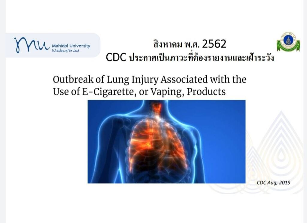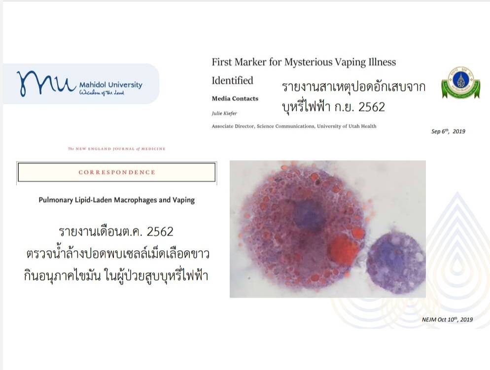 รพ.รามาธิบดี 9 พ.ย.- รพ.รามาธิบดี พบผู้ป่วยปอดอักเสบรุนแรงจากบุหรี่ไฟฟ้า (อิวารี่) รายแรก และเชื่อยังมีผู้ป่วยอีกมาก แต่ไม่รู้ตัว อาการบ่งชี้ มีไข้ หนาวสั่นคล้ายติดเชื้อ ปอดเป็นฝ้าขาว พบไขมันในน้ำล้างปอด มีประวัติสูบบุหรี่ไฟฟ้านานกว่า 90 วัน ภาวะอิวารี่ทำให้ต้องใส่ท่อช่วยหายใจแบบไฮโฟลว์ ห่วงเยาวชนอย่าริลอง หลังพบตัวเลขเด็กไทยใช้บุหรี่ไฟฟ้าเพิ่มมากขึ้น