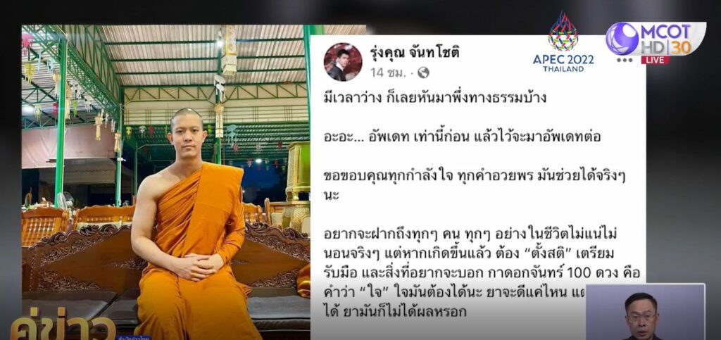 พ.ต.ต.รุ่งคุณ จันทโชติ โพสต์เฟซบุ๊กของตัวเอง (รุ่งคุณ จันทโชติ) เล่าเรื่องราวการป่วยเป็นมะเร็ง เพื่อเป็นประสบการณ์ให้กับผู้อื่น ระบุว่า “เป็นตำรวจ ทำงานหนัก พักผ่อนน้อย เป็นเรื่องธรรมดา แต่เราชอบออกกำลังกายเป็นชีวิตจิตใจเลยนะ ถึงขั้นเสพติดเลยก็ว่าได้ กินเหล้า สังสรรค์บ้าง ตามประสาวัยรุ่น แต่ไม่สูบบุหรี่นะ ที่บ้านก็ไม่มีใครสูบ
