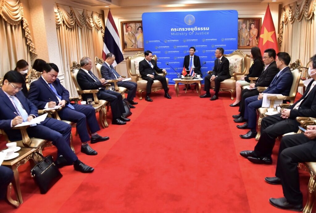 วันที่ 19 พ.ย. 2565 นายสมศักดิ์ เทพสุทิน รัฐมนตรีว่าการกระทรวงยุติธรรม ให้การต้อนรับ พลตำรวจโท เล ก๊วก หุ่ง รัฐมนตรีช่วยว่าการกระทรวงความมั่นคงสาธารณะ เวียดนาม เพื่อหารือข้อราชการ โดยมี นางพงษ์สวาท กายอรุณสุทธิ์ ปลัดกระทรวงยุติธรรม พล.ต.ต.Duong Danh Tung รองอธิบดีกรมความมั่นคงระหว่างประเทศ เวียดนาม เข้าร่วม ที่สำนักงาน ป.ป.ส.