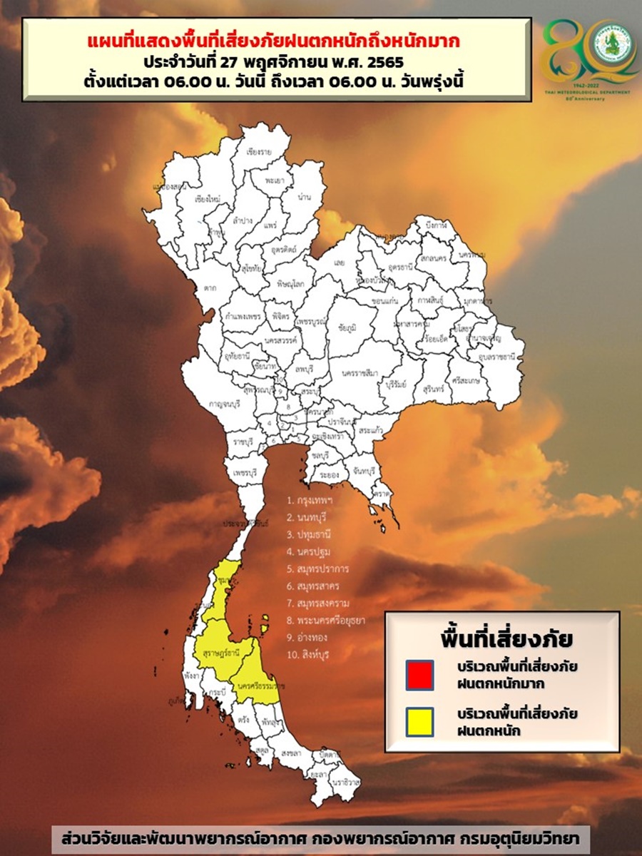 กรมอุตุฯ 28 พ.ย. – กรมอุตุฯ เผยไทยตอนบนมีฝนฟ้าคะนอง ภาคเหนือ-อีสานตอนบน อากาศเย็นในตอนเช้า ส่วนกรุงเทพฯ-ปริมณฑล ฝนฟ้าคะนอง 40% ของพื้นที่