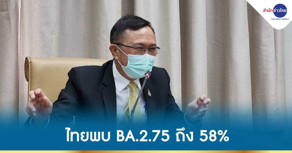สำนักข่าวไทย 28 พ.ย.- กรมวิทย์ฯ เผยในไทยพบเชื้อโควิด BA.2.75 ถึง 58% ส่วนใหญ่เป็นสายพันธุ์มาจากอินเดีย สอดคล้องกับจำนวนนักท่องเที่ยวอินเดียเข้าไทยจำนวนมาก คาดปลายปีนี้ นักท่องเที่ยวยุโรปหนีหนาว อาจทำให้สายพันธุ์มีการเปลี่ยนแปลงอีก ย้ำต้องรับวัคซีน 4 เข็มจึงจะช่วยลดความรุนแรงของโรค