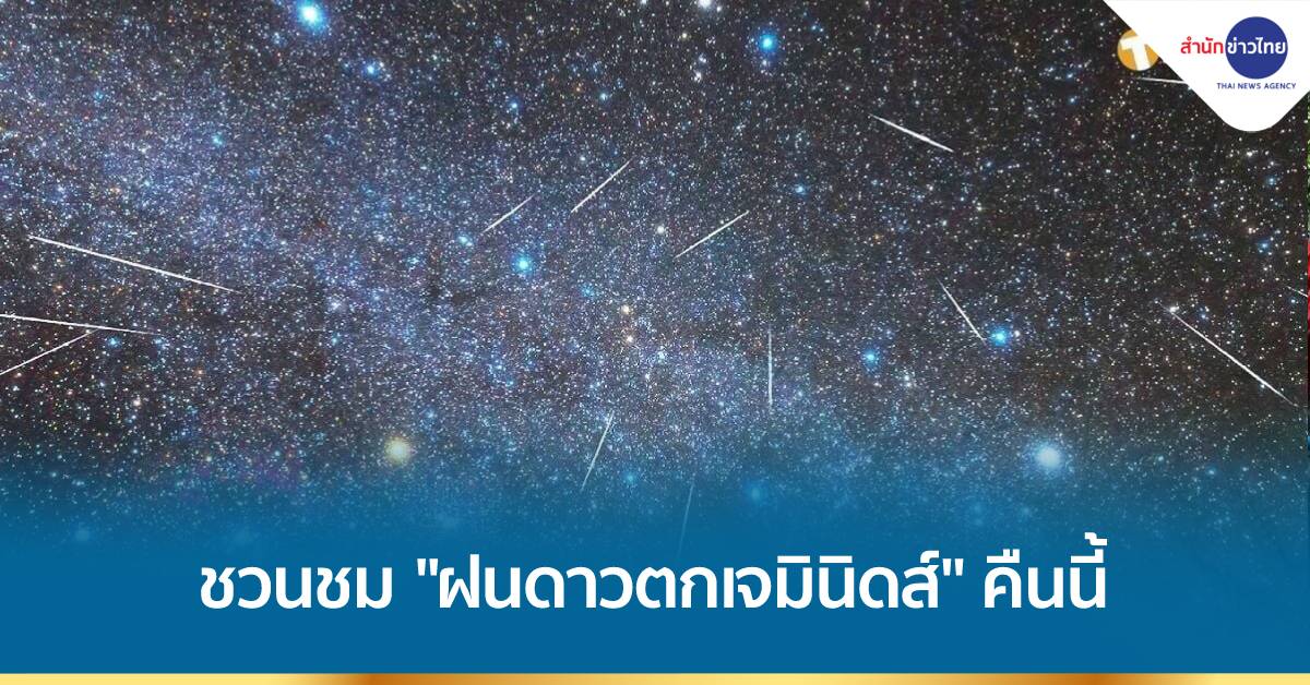 กรุงเทพฯ 14 ธ.ค. – สถาบันวิจัยดาราศาสตร์แห่งชาติ หรือ NARIT ชวนชม “ฝนดาวตกเจมินิดส์” คืนนี้ (14 ธ.ค.) มองเห็นได้ด้วยตาเปล่าทั่วไทย คาดมีอัตราตกสูงสุด 150 ดวง/ชม. พร้อมแนะนำจุดสังเกตชัดเจน 3 แห่ง
